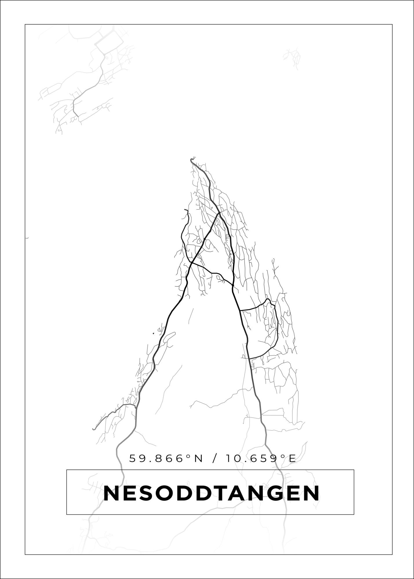 Karta - Nesoddtangen - Vit Poster