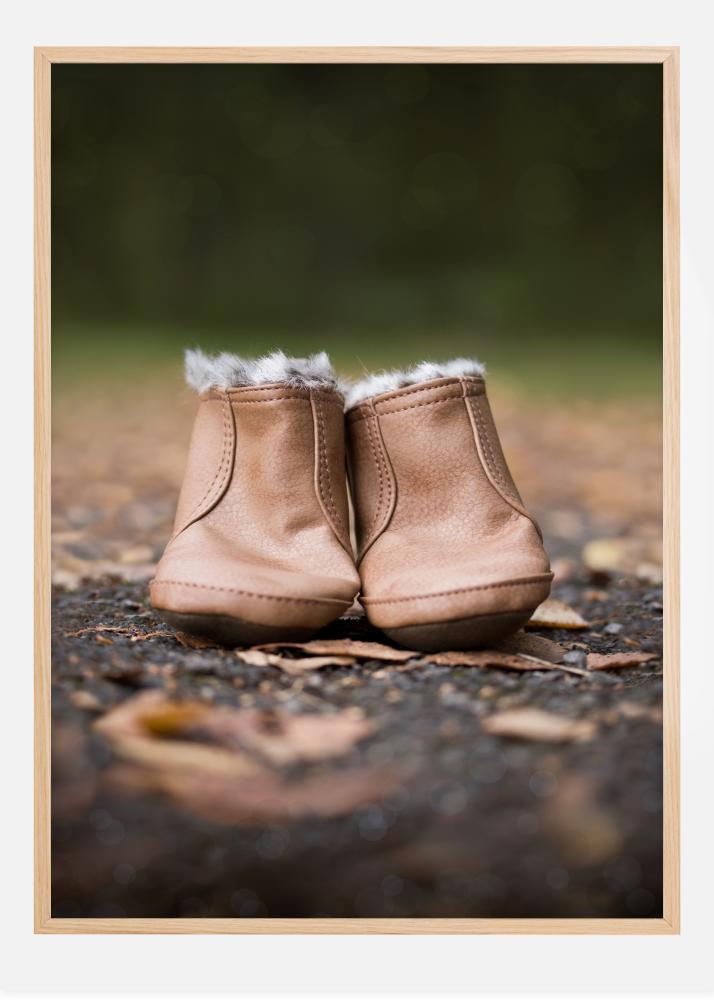 En rolig poster med ett par skor som bara står mitt på vägen. Bli inspirerad till att resa och ta på dig dessa bekväma pälsfodrade stövlar eftersom världen väntar på dig. Eller bli inspirerad att bara gå ut på en promenad när du hänger den här vid din ytterdörr.
