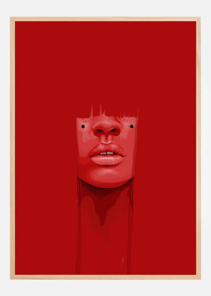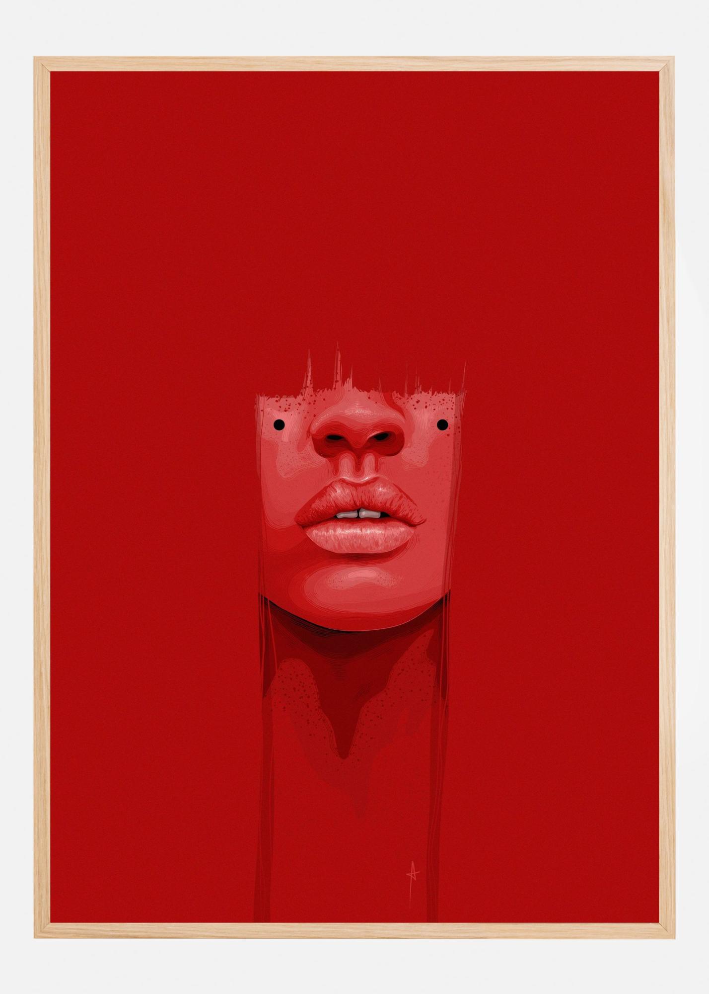 Utforska en djärv och stilfull poster som fångar ögat med sina intensiva röda toner. Denna konstnärliga affisch föreställer en delvis dold kvinnlig silhuett med läppar och näsa framträdande i motivet. Den röda färgen omger och präglar bilden, vilket ger en känsla av mystik och dramatik. Perfekt för den som vill sätta en personlig och modern prägel på sitt hem.