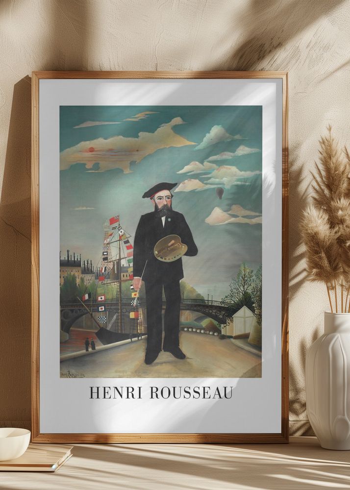 Denna affisch föreställer ett imponerande porträtt där en man står med palett i hand, omgiven av en spännande bakgrund som inkluderar segelfartyg och arkitektoniska element. Det är en konstnär som förkroppsligar kreativitet och äventyr i en fusion av historiska och fantasifulla inslag. Perfekt för att förgylla vardagsrummet eller arbetsplatsen, denna poster blir snabbt ett samtalsämne.