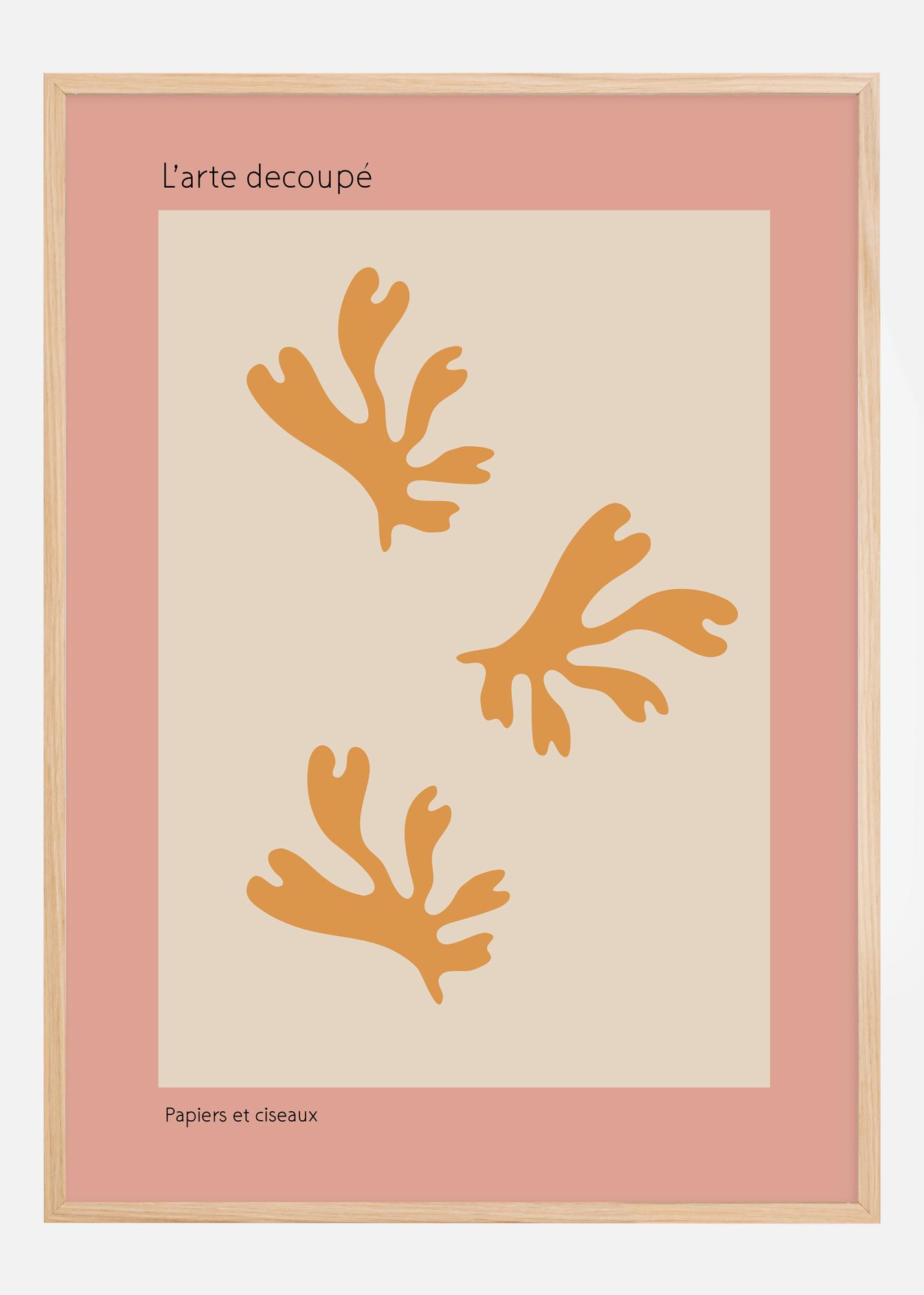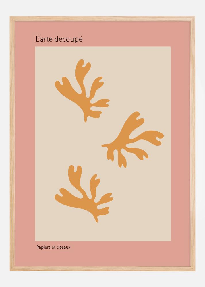 Upptäck den subtila skönheten i minimalistisk design med vår senaste kollektion av affischer. Denna eleganta print, betitlad 'L'arte découpé', presenterar en trio av abstrakta former som påminner om korall eller havsväxter, utförda i en varm palett av aprikos och beige toner mot en lugnande krämfärgad bakgrund. Dessa organiska former är skurna med precision och flyter över ytan, vilket skapar en känsla av rörelse och frihet. Perfekt för den som vill lägga till en touch av sofistikerad enkelhet i sitt hem eller kontor, är denna print ett statement av modern estetik.