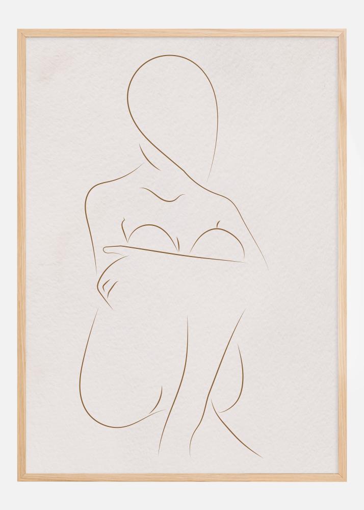 Denna eleganta och minimalistiska poster avbildar en kvinnofigur skapad med tunna linjer som fängslar i sin enkelhet. Den linjära konsten använder en subtil och avskalad estetik för att skildra den kvinnliga formen, vilket ger utrymme för betraktarens egen tolkning och fantasi. De mjuka konturerna och det avskalade uttrycket ger ett modernt och stilrent intryck som passar väl i en minimalistisk eller skandinavisk designinriktning.
