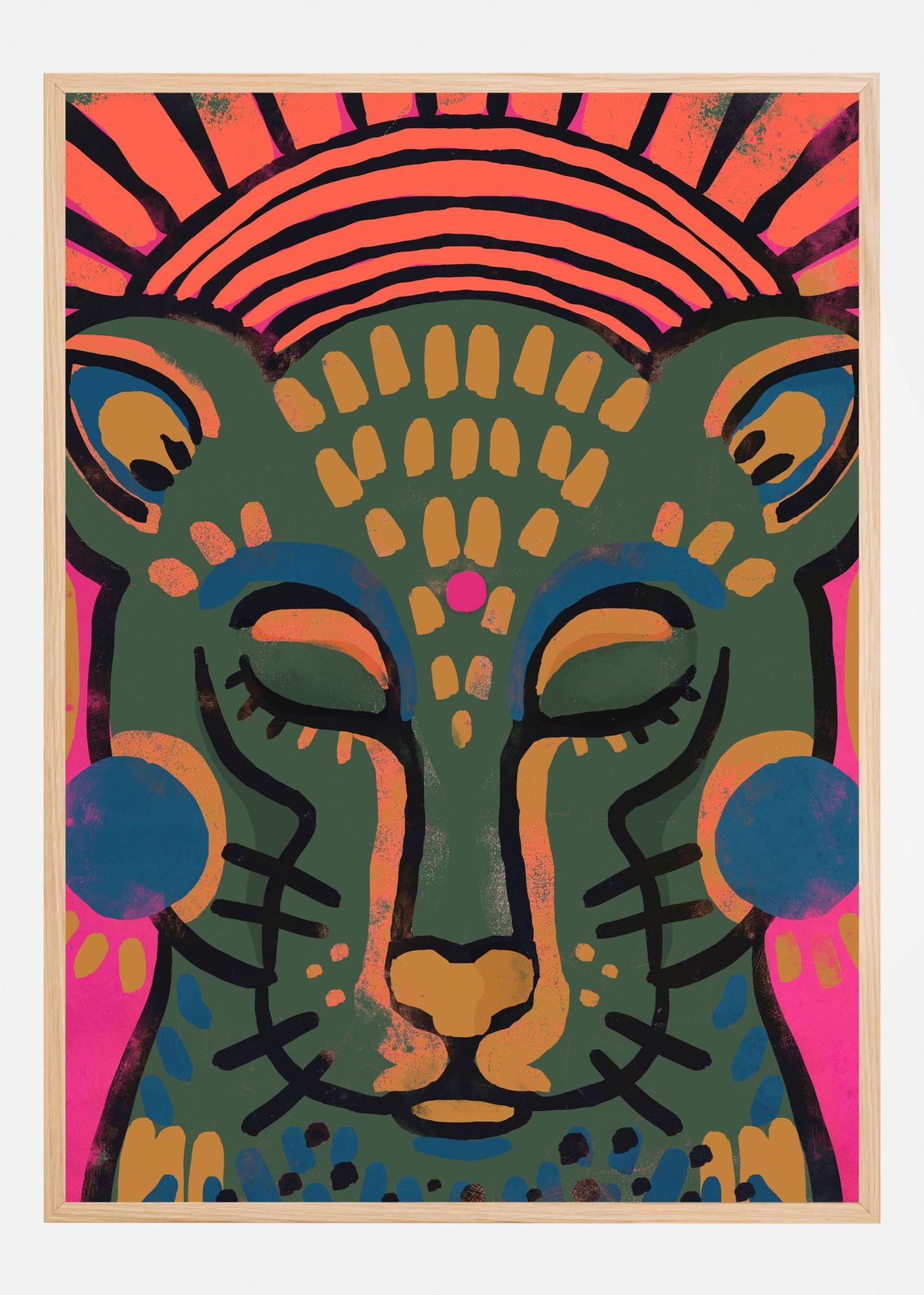 Denna poster fångar blicken med ett djärvt och levande motiv som kombinerar det vilda med det konstnärliga. Ett stiliserat djuransikte dominerar bilden, präglat av geometriska former och djärva linjer. De intensiva färgerna skapar en känsla av energi och rörelse, vilket gör denna print till ett perfekt tillskott i vilket modernt hem som helst.