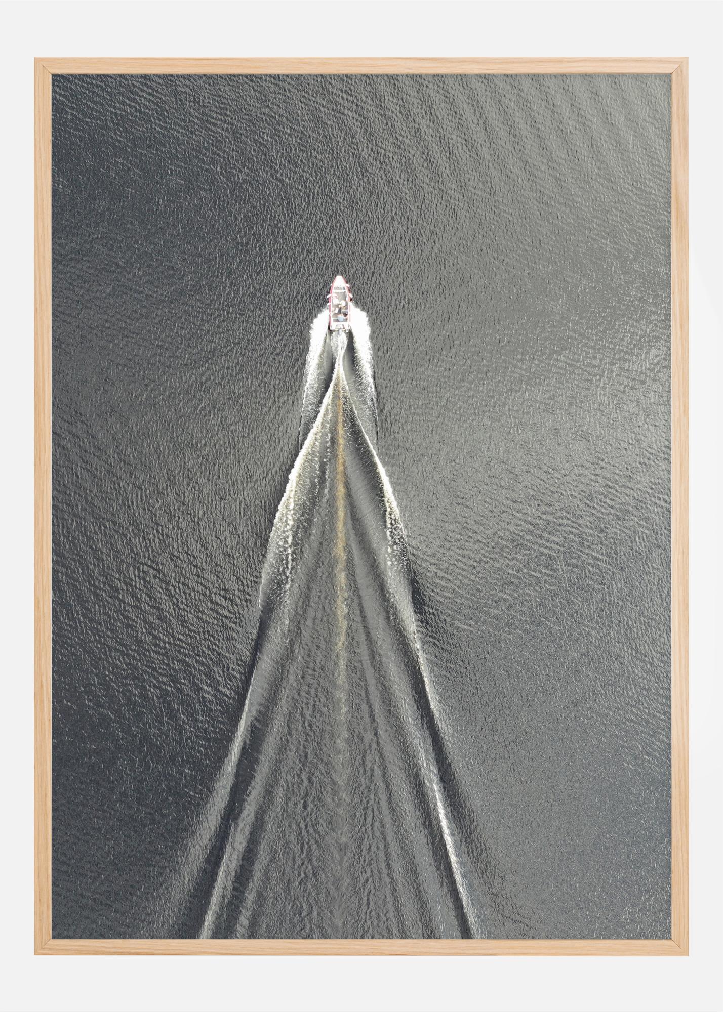 Postern "Usain Boat" fångar essensen av hastighet och frihet. En kraftfull motorbåt skär igenom det lugna vattnet, lämnar ett imponerande kölvatten som ett tydligt spår av dess hastighet. Kontrasten mellan det mörka, nästan texturerade vattnet och det vita skummet skapar en visuell dynamik som är både rogivande och upplyftande.
