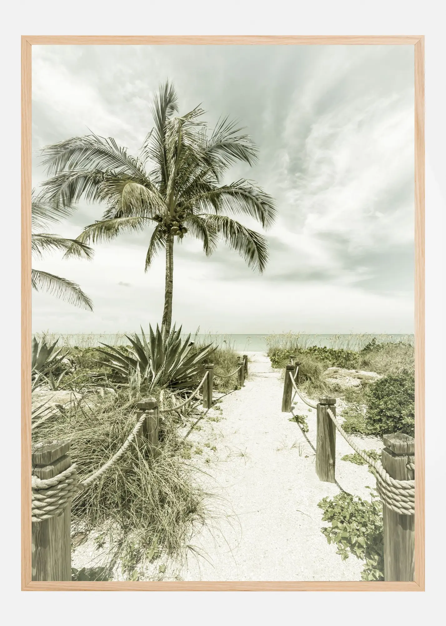 Denna poster fångar essensen av en lugn strandpromenad, perfekt för att skapa en känsla av stillhet och avkoppling i ditt hem. Med ett vackert palmträd som tornar upp sig över en sandig stig, inbjuder bilden till drömmar om varma sommardagar och exotiska resmål. Denna print passar perfekt för dig som älskar naturmotiv och vill ha en bit av tropikerna på väggen.