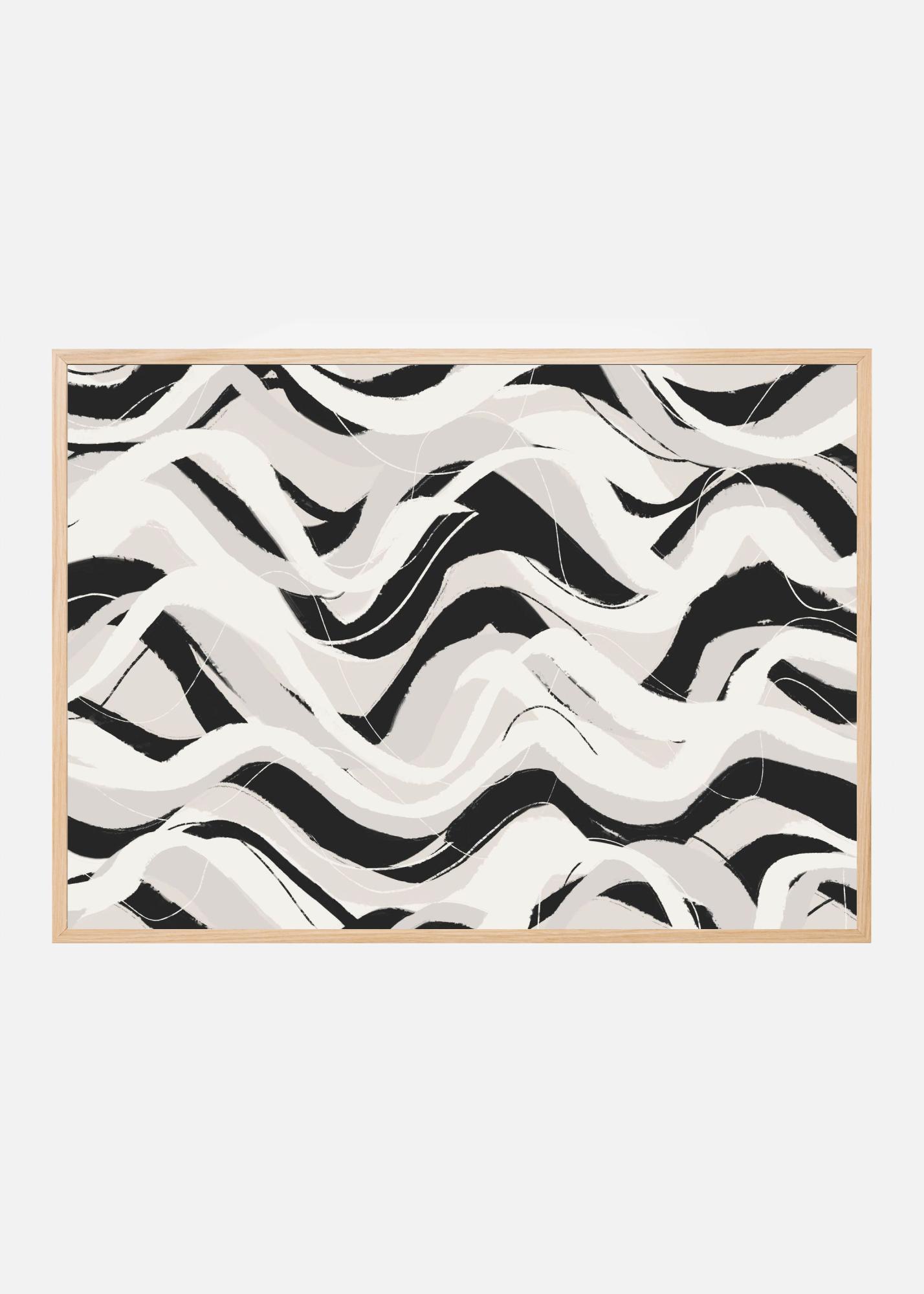 Denna poster är ett uttryck för modern minimalism, med dynamiska linjer och svepande rörelser som skapar ett engagerande visuellt landskap. Motivet fångar en kreativ blandning av svarta, vita och gråa nyanser, vilket ger en tidlös känsla som enkelt smälter in i olika inredningsstilar. Perfekt för att tillföra en sofistikerad touch till ditt hem eller kontor, denna affisch framhäver elegans och stil.