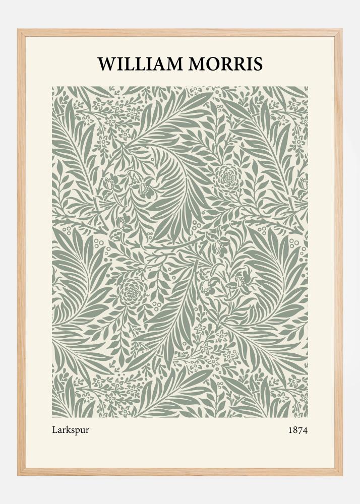Den här William Morris-affischen, med titeln "Larkspur" från år 1874, visar upp ett virvlande hav av flora i en förtrollande och genomarbetad design. Varje element i detta detaljerade mönster är omfattande sammanflätat, skapar en livlig och fängslande effekt. Denna print skulle vara en utsökt detalj i alla hem som värdesätter konsthantverk och den naturnära estetiken från Arts and Crafts-rörelsen.