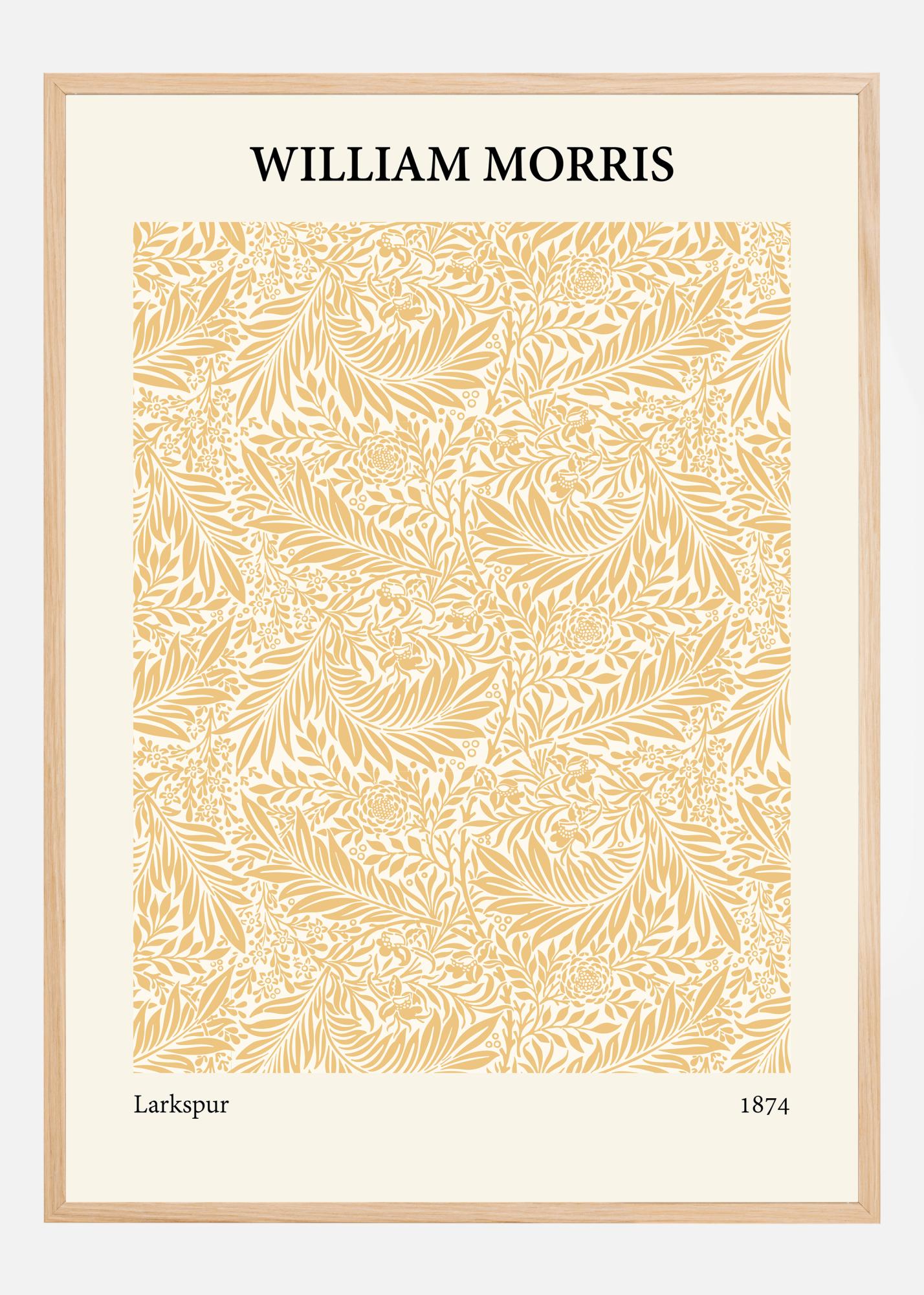 Med sin varma, monokromatiska guldton, återskapar denna affisch den överdådiga designen av William Morris' "Larkspur" från 1874. Den rika kompositionen av blad och blommor dansar över pappret, vilket illustrerar den skicklighet och precision som Morris är känd för inom Arts and Crafts-rörelsen. Denna poster ger en känsla av värme och solsken till vilket rum som helst och är en underbar hyllning till det viktorianska era konsthantverket.
