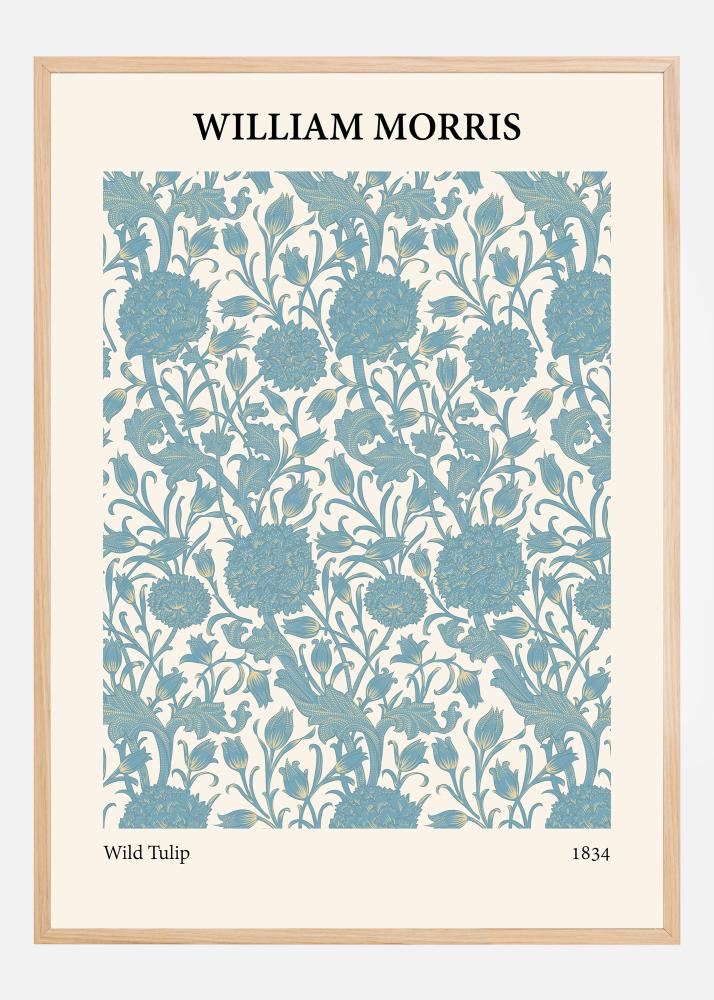 Denna exklusiva William Morris-affisch, "Wild Tulip", är en uppvisning av konstnärens ikoniska stil och älskning för naturen. Med ett utsökt mönster av tulpaner i nyanser av sval blå och grön, mot en krämfärgad bakgrund, återskapar denna print den rika textur och detalj som Morris är känd för. Dess rika och levande design skapar ett iögonfallande fokus i varje inredning, och erbjuder en tidlös skönhet som är karakteristisk för Morris' verk.