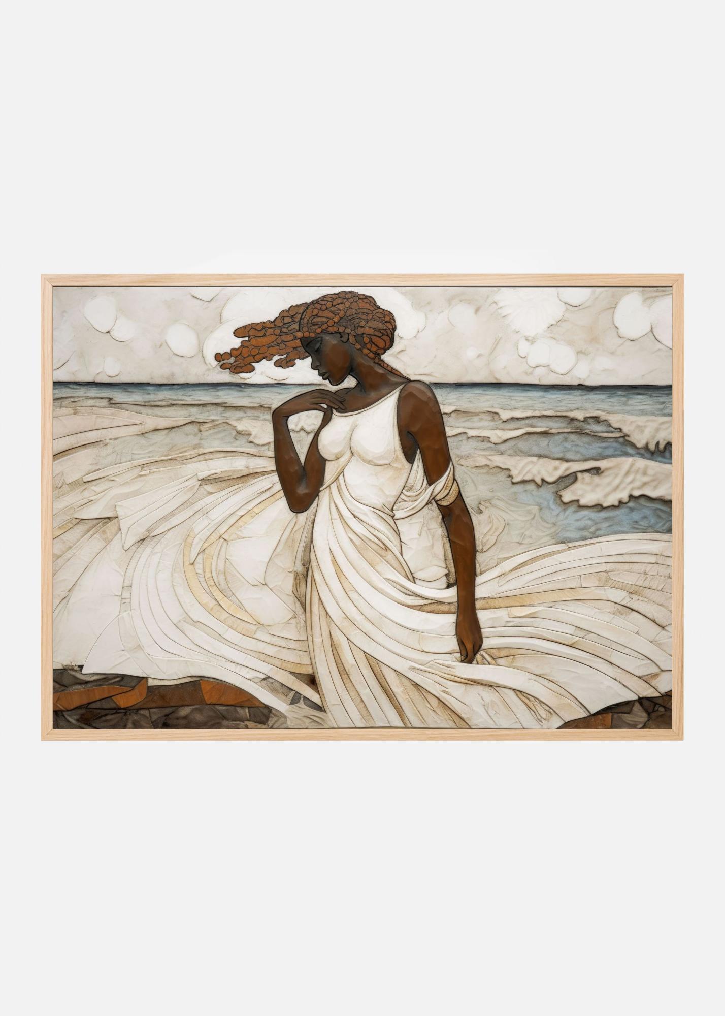 Denna vackra poster fångar essensen av grace och rörelse i en elegant illustration. Motivet visar en kvinna i en flödande vit klänning som verkar dansa i vinden, och ger en känsla av både frihet och styrka. Den milda färgpaletten av beige och bruna toner skapar en harmonisk och rogivande känsla. Perfekt för att ge ett stilrent intryck i ditt hem eller kontor.