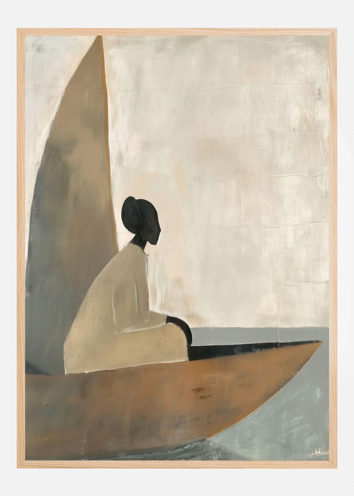 Denna eleganta poster fångar en känsla av stillhet och eftertanke med sitt avskalade motiv av en person sittande i en båt. Med en minimalistisk stil och mjuka linjer, passar denna print perfekt för dem som söker en sofistikerad och konstnärlig touch i hemmet. Affischen drar också uppmärksamhet genom sin tidlösa estetik som kan komplettera både moderna och traditionella inredningar.