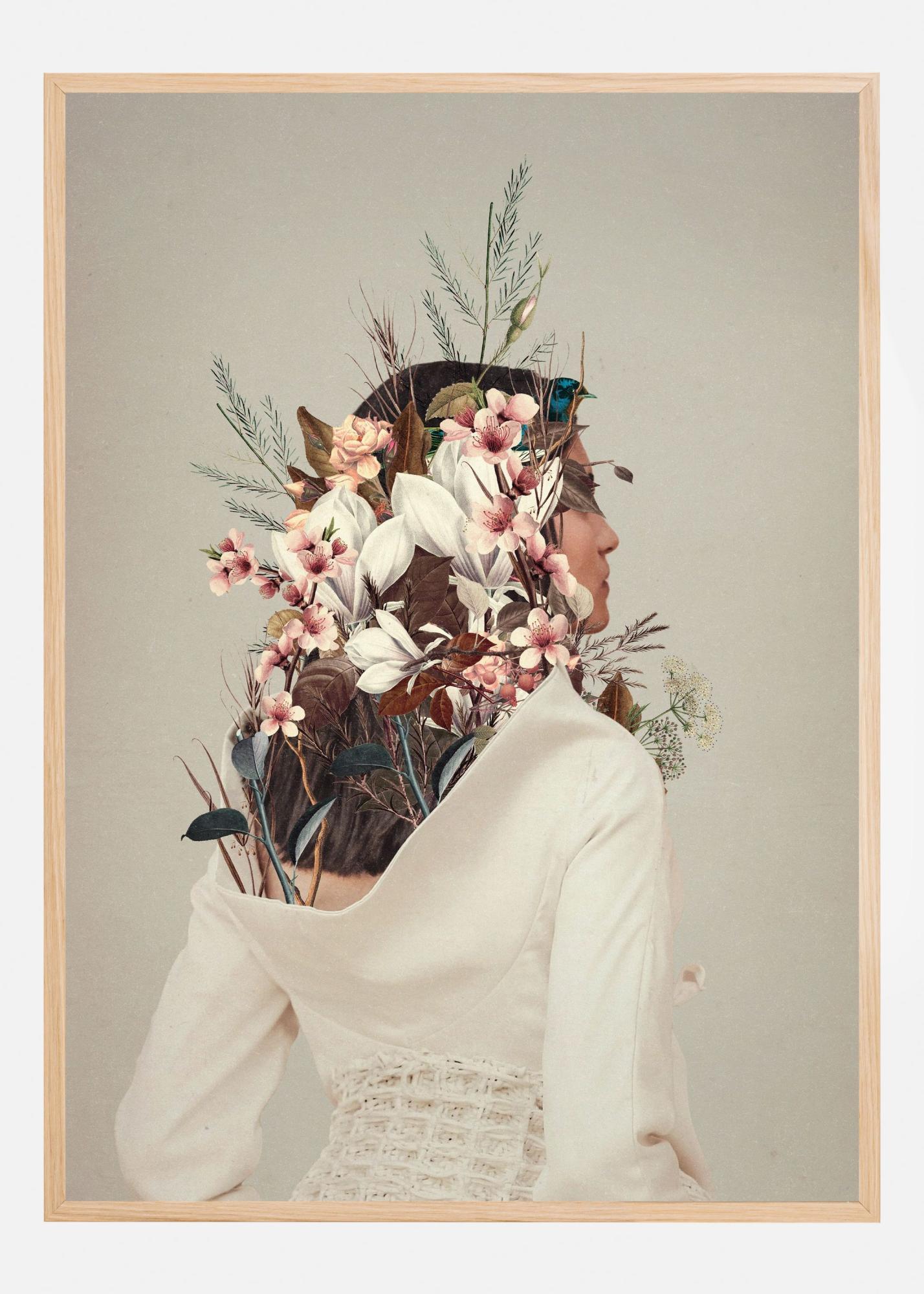 Denna unika affisch kombinerar elegans och modern konst med ett fascinerande motiv av en kvinna vars hår övergår i en blomsterbädd. Det är en perfekt poster för dem som vill sätta en kreativ och stilfull prägel på sin inredning. Motivet fångar en subtil rörelse och djup, vilket gör det till ett blickfång i alla rum.