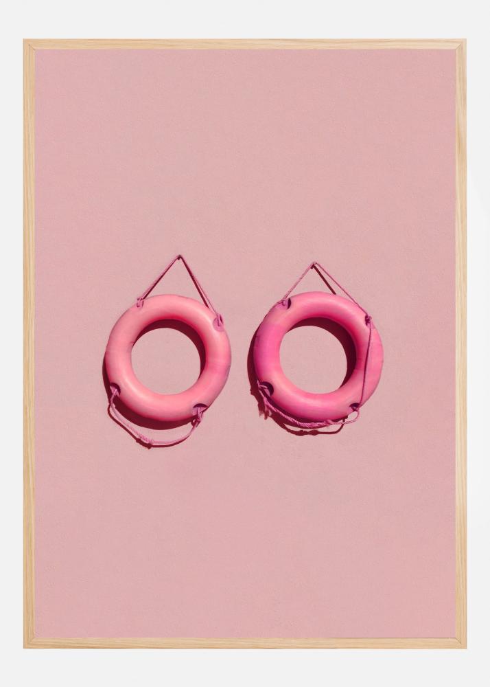 Denna trendiga poster fångar uppmärksamhet med sitt minimalistiska motiv bestående av två rosa badringar. Den stilrena kompositionen skapar en modern känsla som passar perfekt i vilket rum som helst. Perfekt för dig som vill addera en touch av sommar och lekfullhet till din inredning.