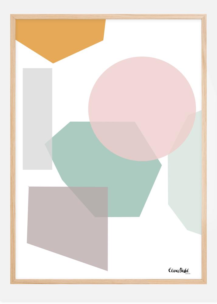 En abstrakt poster med grafiska former i härliga pastellfärger skapad av designer Elina Dahl. Motivet passar perfekt till det moderna hemmet eller kanske till barnkammaren? Komplettera gärna med flera av våra härliga Elina Dahlposters för en större tavelvägg i samma tema.