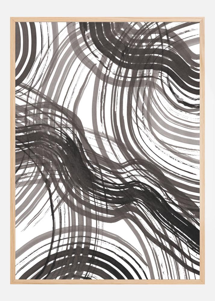En virvlande abstrakt poster med olika grå toner av bläck på vitt. De böjda linjerna skapar en flytande rörelse som drar ögat uppåt och runt verket i en ändlös slinga. Få bort tankarna och njut av virvlarna i detta enkla men eleganta verk i ditt hem.