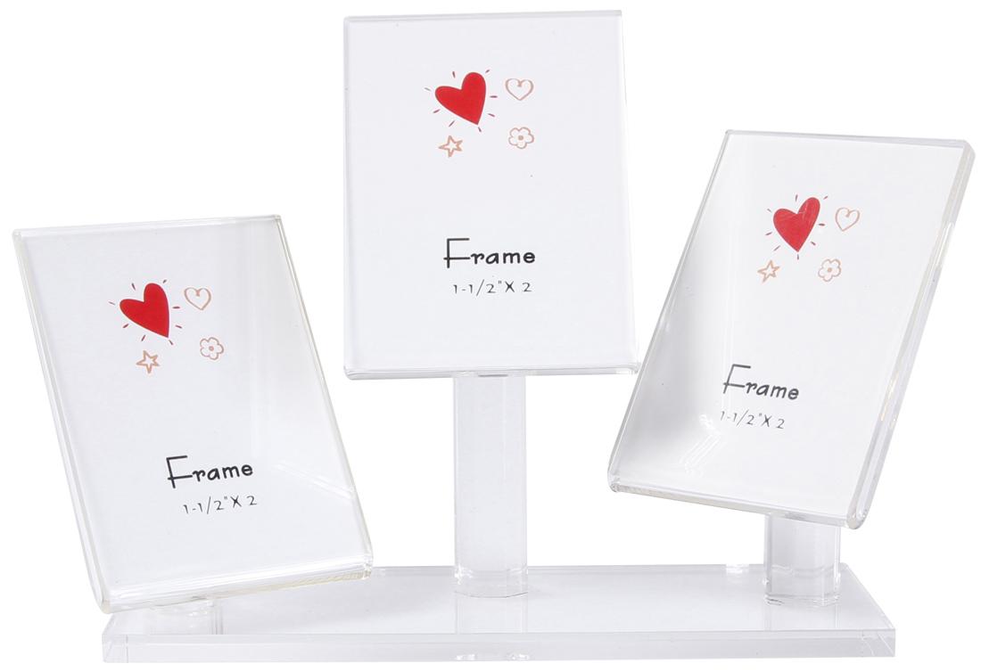 Miniram av akrylplast på fot med plats för 3 bilder i formatet 4x6 cm.