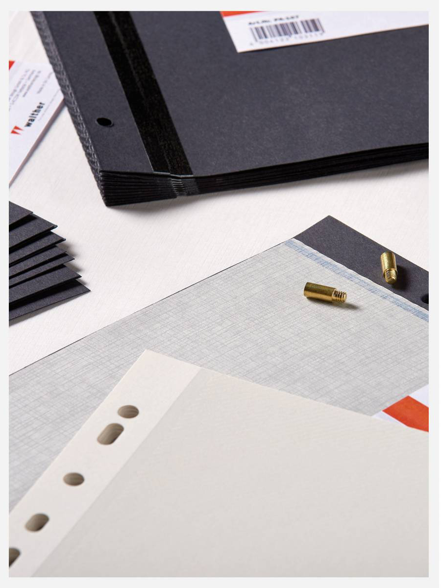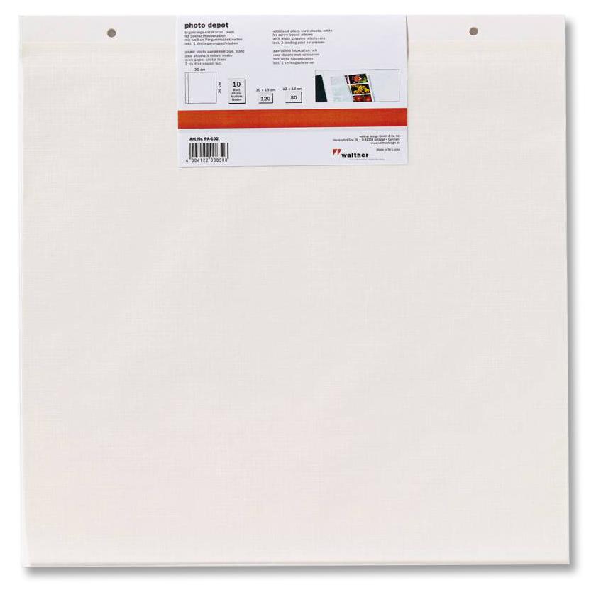 Albumblad passande Walther Premium Album Vinröd och Svart. Förpackningen innehåller 10 vita albumblad och förlängningsskruvar som fästs i de skruvar som finns i albumet.