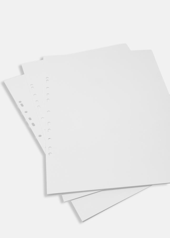 10 vita syrafria kartongblad i A3-format. Perfekta att samla tidningsurklipp, recept och liknande på.