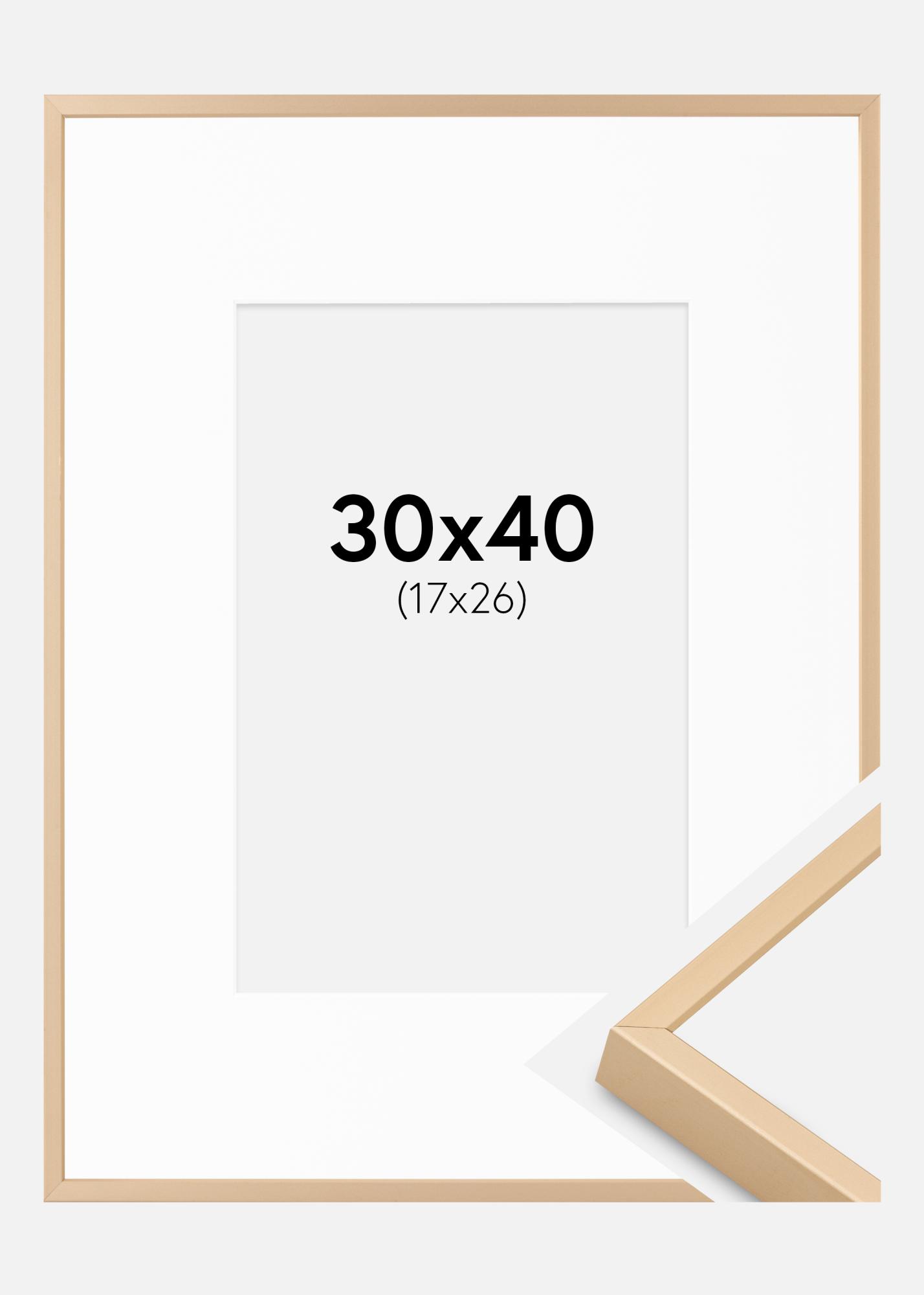 Aluminiumram Mässing 30x40 cm - Passepartout Vit 18x27 cm