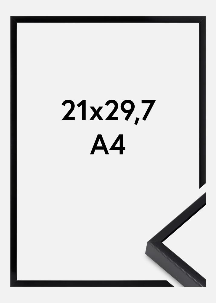 Upptäck elegansen och den moderna designen med vår svarta, blanka aluminiumram i storleken 21x29,7 cm (A4). Denna stilrena fotoram är perfekt för att framhäva dina favoritbilder eller konstverk med en diskret touch. Den tunna ramlisten, endast 7,8 mm bred, ger ett nästan svävande intryck av ditt motiv.