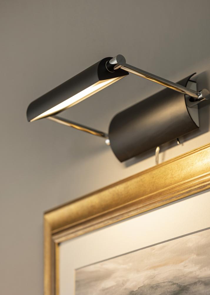 Tavelbelysning designad i Sverige med LED belysning för lång hållbarhet. Belysningen har ett bra ljussken på 6W som motsvarar 540 lummen som ger det där lilla extra till dom tavlor du tycker extra mycket om och vill visa upp. Belysningen är enkel att reglera så du får den vinkel du vill på ljuset. Passar alla tavlor som har en bredd på 40-60 cm.