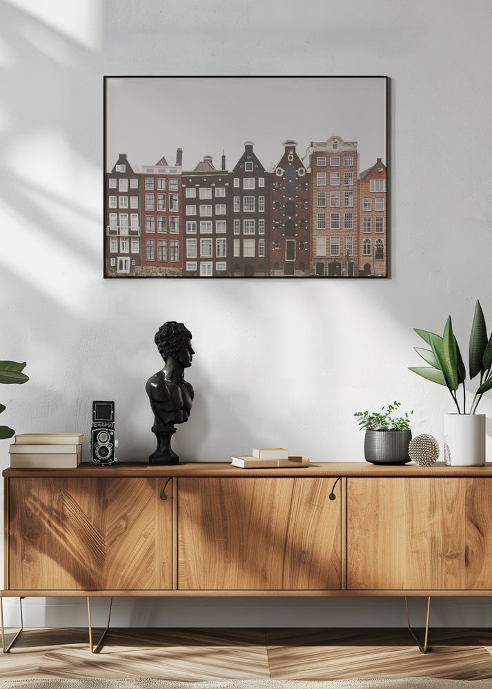 Denna poster fångar charmen och skönheten i en rad ikoniska kanalhus, perfekt för dig som älskar europeisk arkitektur. Bilden visar en rad klassiska hus med deras unika gavelstilar, vilket ger en känsla av historia och tradition. Det eleganta motivet passar perfekt in i både moderna och traditionella inredningar, och fungerar lika väl som en solitär detalj i ditt hem eller kontor. Den här affischen blir en stilren inredningsdetalj som både förhöjer atmosfären och bjuder på inspiration till alla som älskar stadslivets charm.