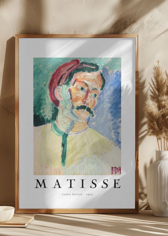 Denna poster föreställer ett verk av André Derain från 1905, med en tydlig influens av fauvismen. Motivet visar en person med distinkta drag, fångad i ett uttrycksfullt och färgrikt porträtt. Den här affischen är perfekt för den som söker ett konstverk som sticker ut, med inspiration från tidiga 1900-talets konstströmningar.