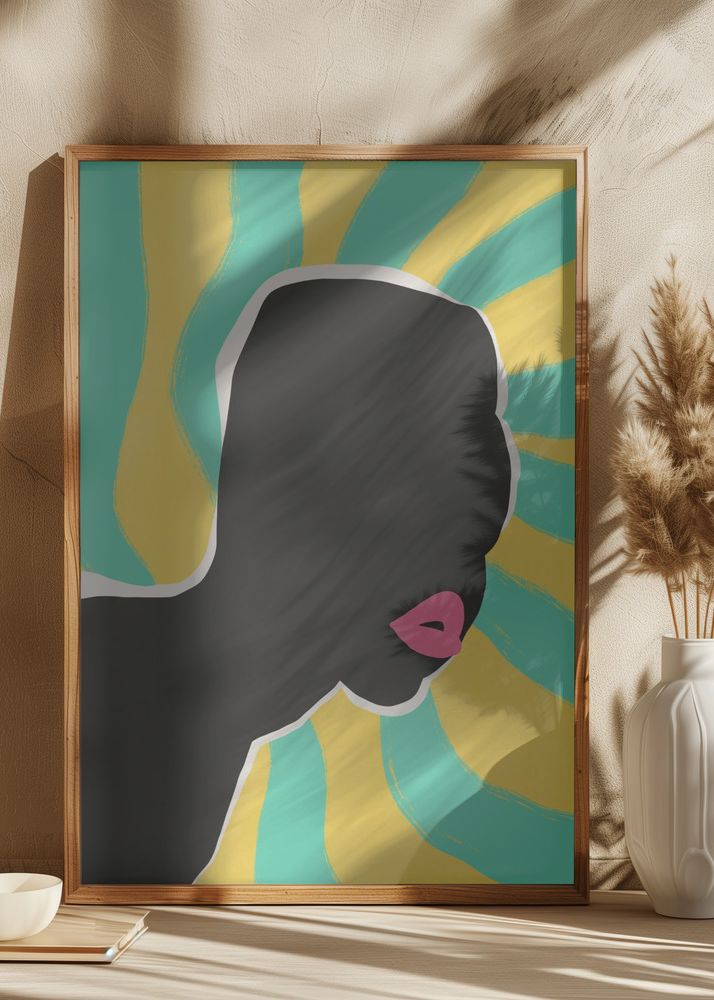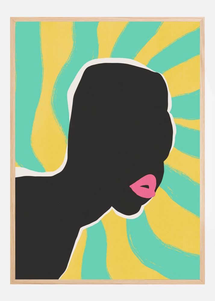 Denna stilfulla poster pryds av ett grafiskt motiv som föreställer en kvinnoprofil i kontrasterande färger. Den ikoniska silhuetten i djupt svart framträder starkt mot en livlig bakgrund i strålande gult, vilket skapar en modern och kraftfull bild som passar utmärkt i ett samtida hem. Den rosa läppen tillför en lekfull touch och bryter av det minimalistiska mönstret med en våg av femininitet.