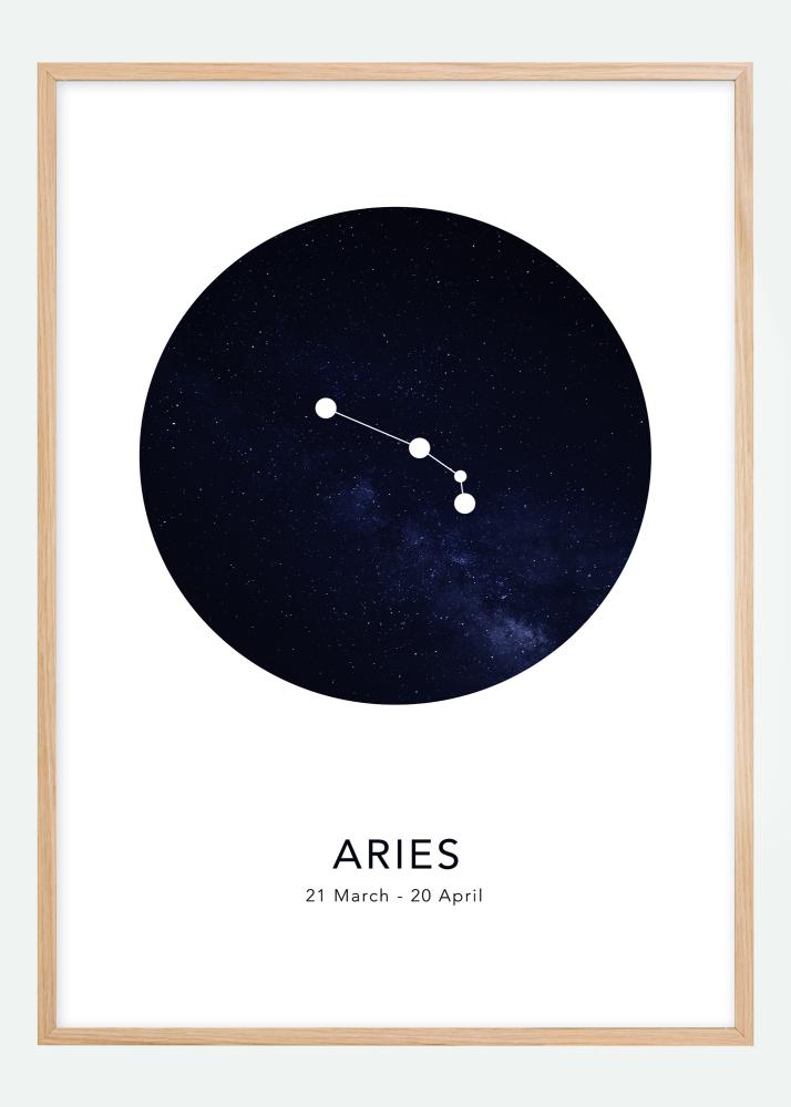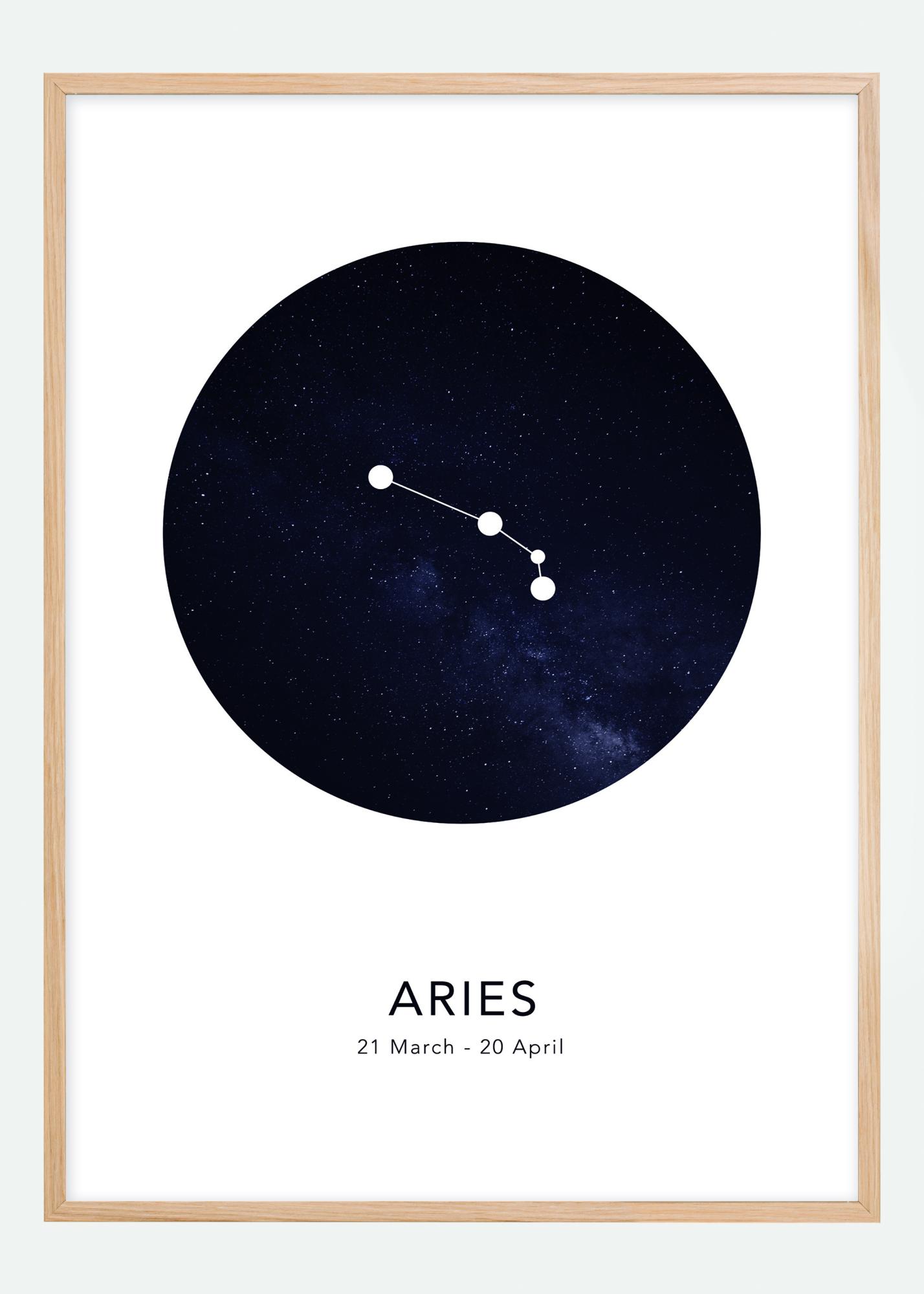 Ge bort en personlig tavla till någon som du tycker om! Den här stilsäkra planschen har motiv av stjärntecknet Väduren mot en bakgrund i form av en svart och blå stjärnhimmel. Nedanför finns namnet tillsammans med gällande datum på engelska.
