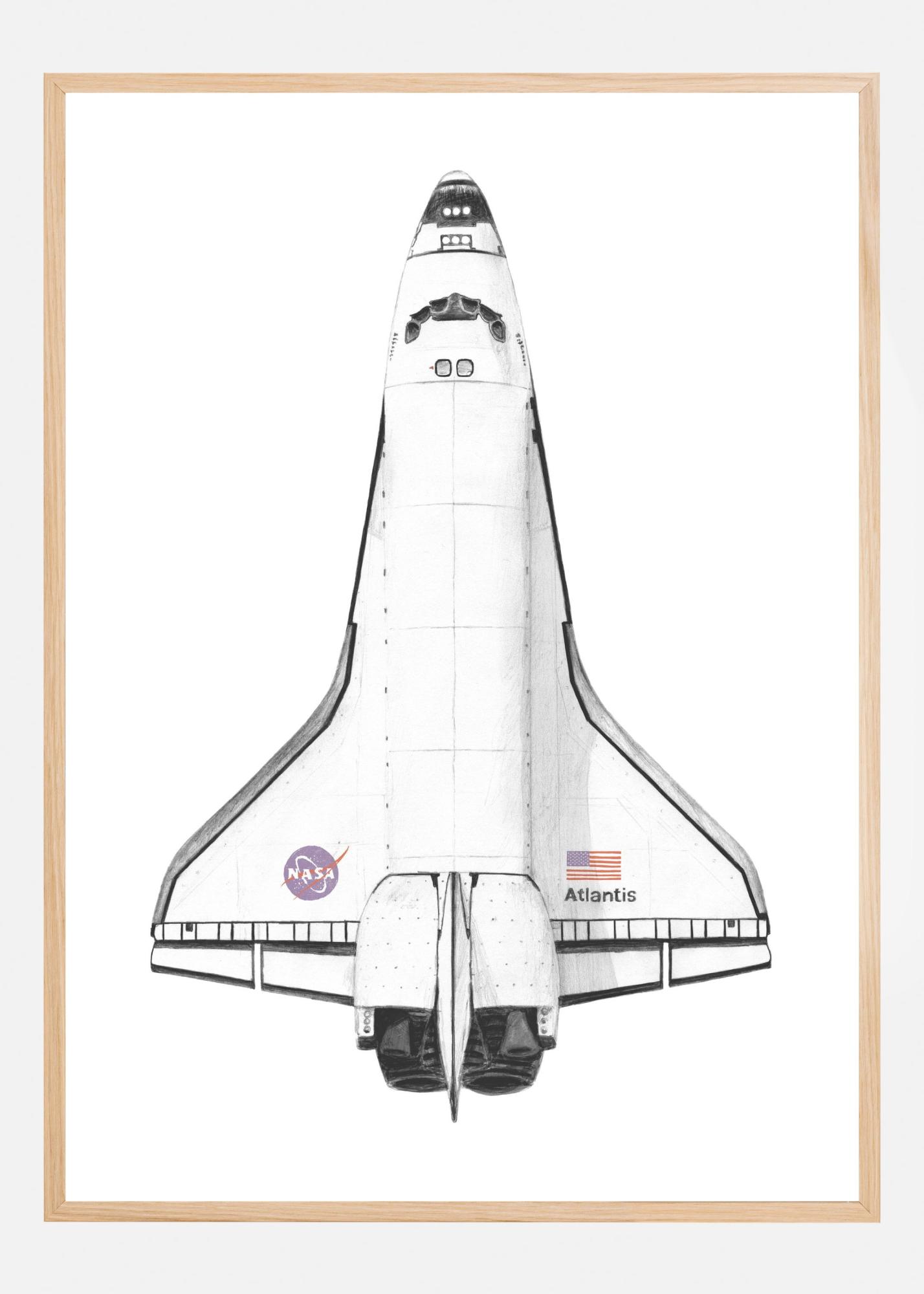 Upptäck en värld av inspiration med denna stilfulla och detaljerade poster som avbildar den ikoniska rymdfärjan Atlantis. Detta minutiöst utförda print passar perfekt för alla rymd- och teknikentusiaster som söker att addera ett inslag av upptäckarglädje och vetenskaplig ära till sin heminredning. Dominansen av nyanser i vitt och grått, ackompanjerat av små detaljer i lila och rött från NASA-logotypen samt det amerikanska flaggemblemet, gör denna affisch lätt att integrera i varje rum och färgschema.