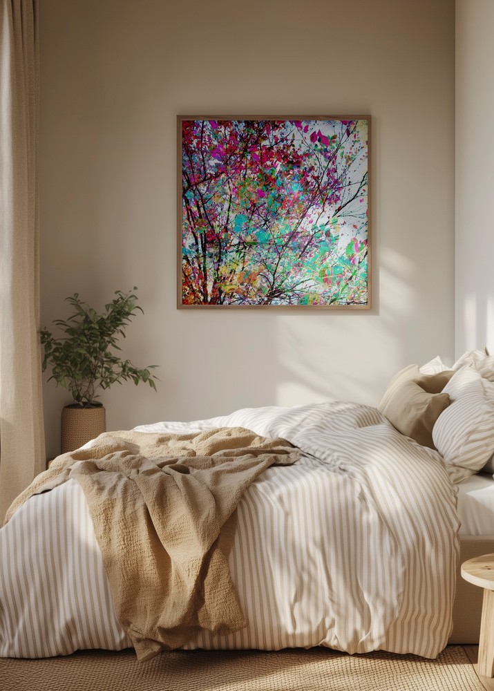 Denna levande poster fångar essensen av naturens skönhet genom ett färgstarkt och dynamiskt motiv. Grenarnas invecklade mönster sträcker sig över hela printen och skapar en fascinerande visuell upplevelse. Perfekt för att liva upp vilket rum som helst, denna affisch införlivar en känsla av både energi och lugn. Motivet är en abstrakt tolkning av trädens skönhet, något som säkert kommer att dra blickar och inspirera samtal.