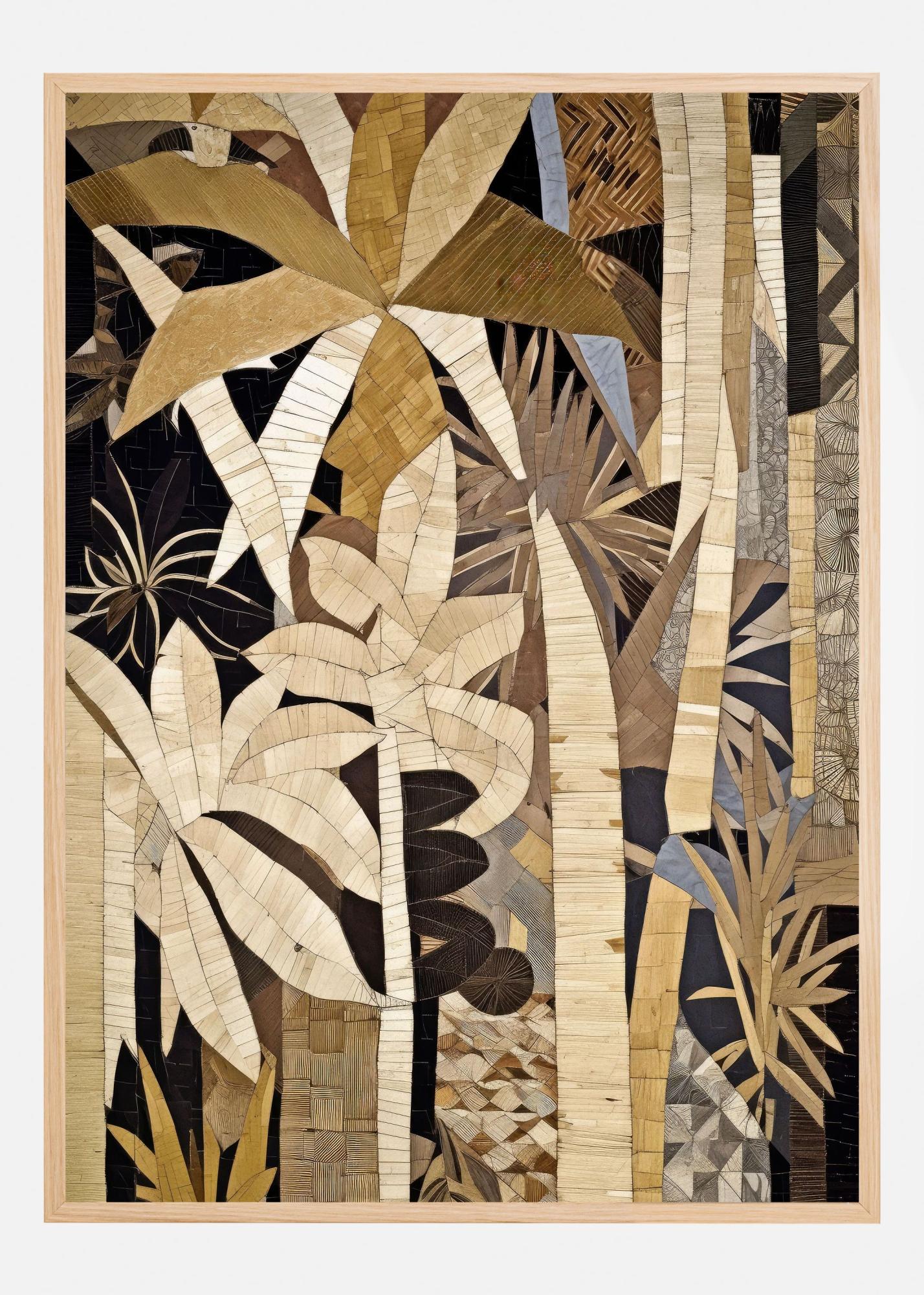 Denna poster erbjuder ett intrikat mönster av abstrakta tropiska växter, perfekt för att förnya vilket rum som helst med en touch av naturens skönhet. Med en kombination av stiliserade palmblad och andra växtmotiver skapar printen en harmonisk känsla av djungel och elegans. Passar utmärkt som en central affisch i vardagsrummet eller en stämningshöjande detalj i arbetsrummet.