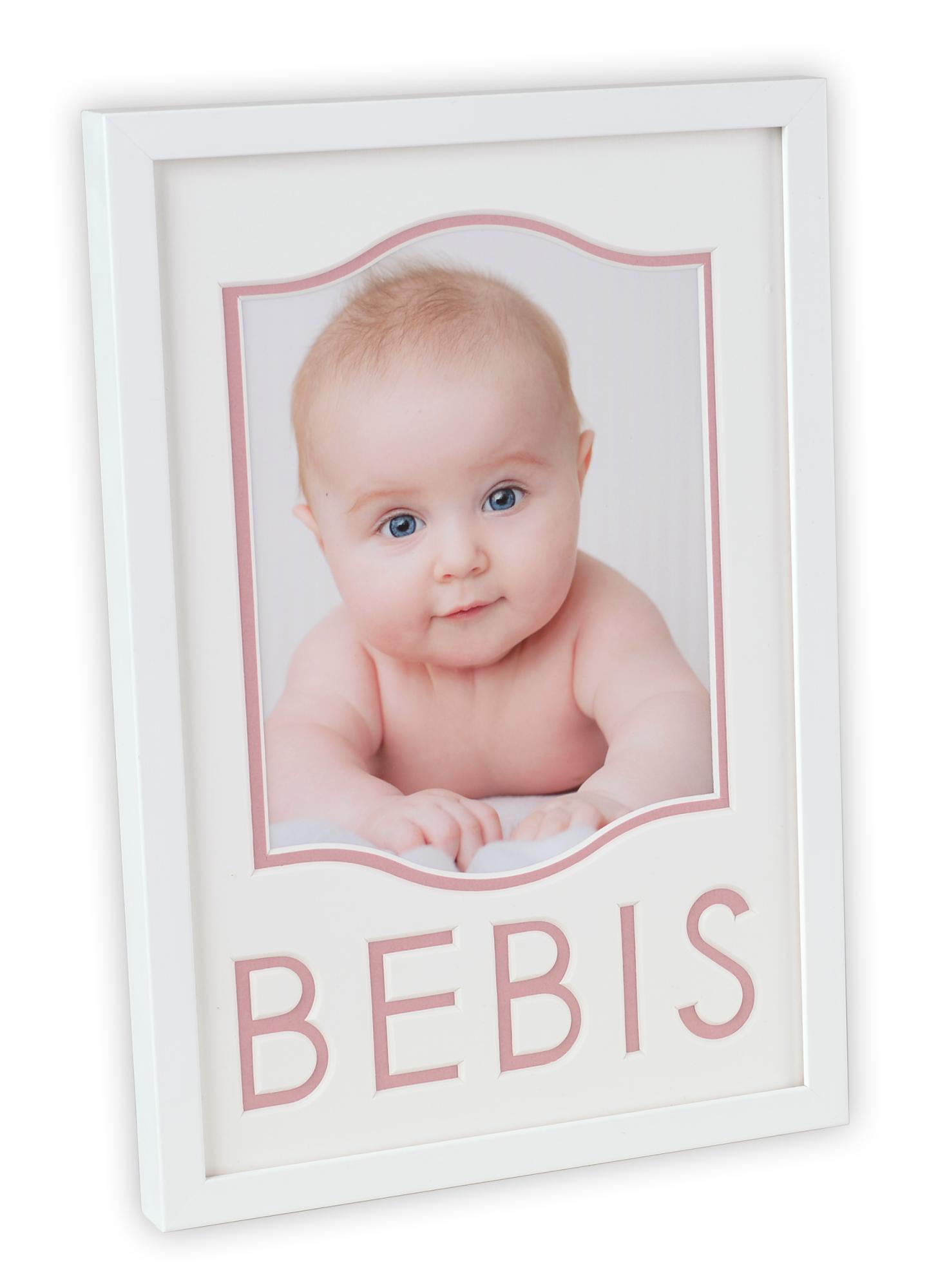 Fin fotoram i vitt och rosa med texten "BEBIS" och plats för 1 bild i storleken 15x20 cm. Underbar ram till bilder på din lilla prinsessa.