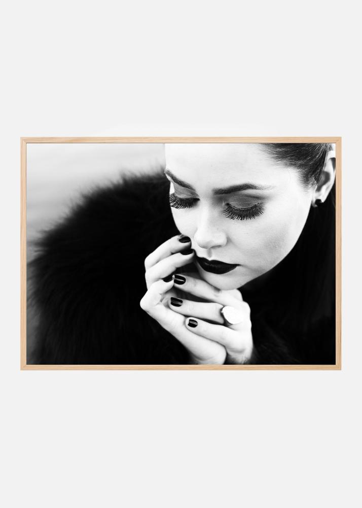 Denna eleganta poster fångar en tidlös skönhet i en sofistikerad svartvitt stil. Det porträttliknande motivet visar en närbild av ett ansikte där detaljer som långa ögonfransar och mörka läppar framhäver en känsla av mystik och djup. Den svartvita färgpaletten ger en klassisk och stilren touch, vilket gör affischen till ett perfekt val för dem som uppskattar minimalistisk och stilfull inredning.