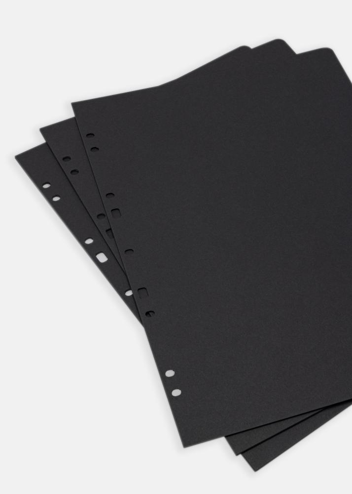 Dessa albumblad i SA4-storlek är perfekta för ringpärmar och ger gott om utrymme för att montera och bevara dina bilder och minnen. De svarta bladen skapar en elegant kontrast och framhäver dina foton på ett stilrent sätt.
