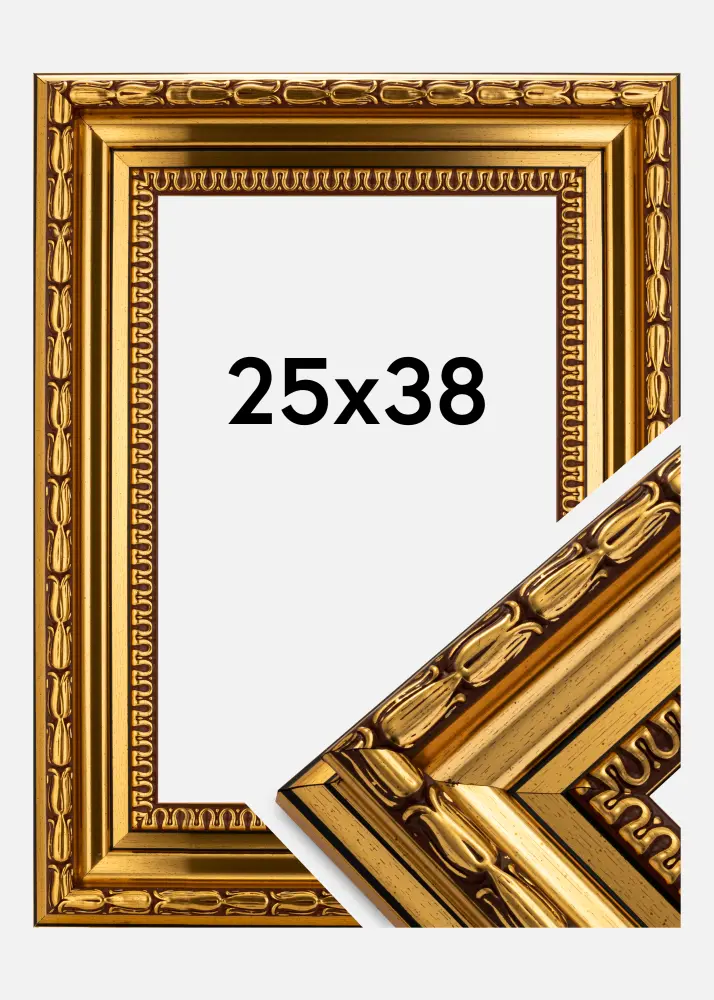 Birka är en guldram som man gärna tittar extra länge på. Med sin breda profil och vackra utsmyckningar är detta en ram som passar när du söker något riktigt spektakulärt. Ramen tillverkas i vår egna ramverkstad vilket gör att vi vågar utlova en kvalité utöver det vanliga!