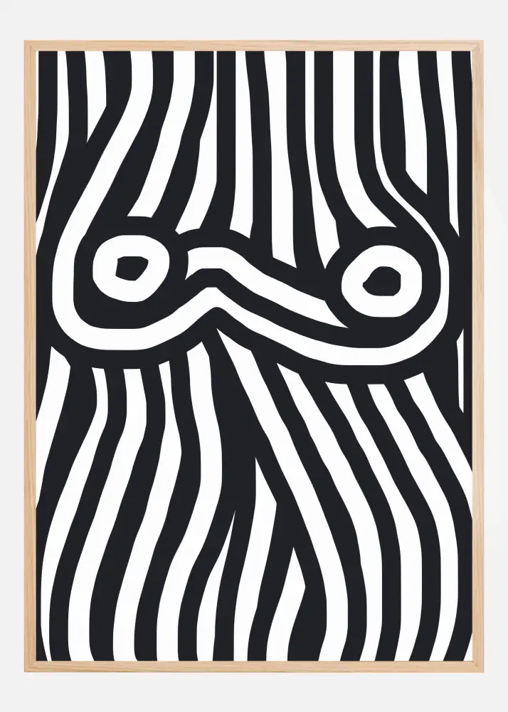 Denna stilrena print är ett utmärkt val för den som uppskattar grafisk design och söker ett konstverk som inte bara är dekorativt utan också samtida och tankeväckande. Med sina rena linjer och starka visuella kontraster, blir detta mönster ett kraftfullt uttalande i varje hem eller kontor. Det är en poster som inte bara pryder väggen, den engagerar också sin betraktare och blir ämne för många intressanta samtal.