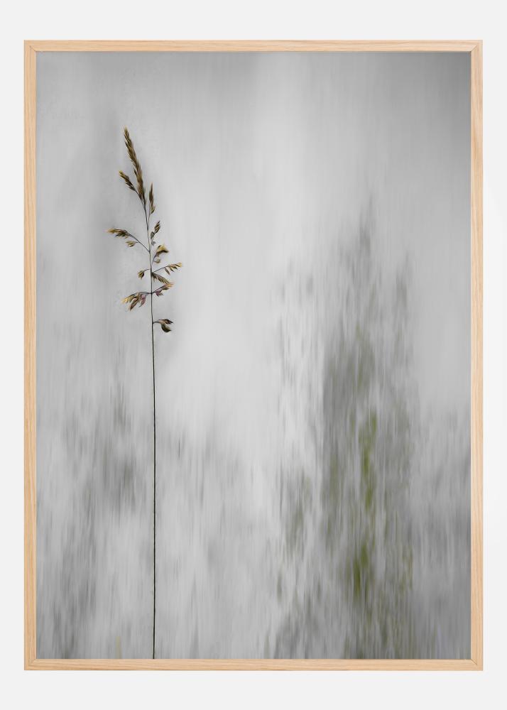 En mjuk poster med ett enda ax gräs mot en mjuk grå bakgrund. Det guldgula axet står tydligt ut mot ett mjuk fokus i bakgrunden som fångar blicken. Häng bilden på en neutral vägg i hemmet för en touch av det magi med hjälp av det här enkla verket.
