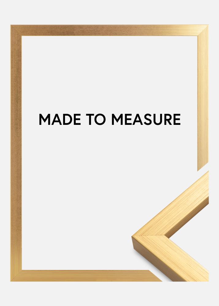 Blocky Guld är tillverkad av folierad furu, vilket ger en hållbar och kvalitativ finish. Varje ram skapas i vår egen ramverkstad, vilket innebär att vi kan garantera högsta kvalitet och precision i varje detalj. Eftersom denna tavelram är måttbeställd, kan du anpassa storleken exakt efter dina behov och önskemål.