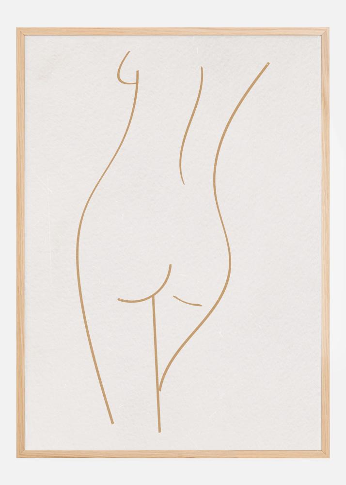 En enkel tecknad poster med en kvinna med ryggen mot dig. Tunna bruna linjer är allt som behövs för att skapa formen av den här kvinnan som poserar bakifrån. Linjerna leder blicken uppåt längs ryggen i den här enkla, men eleganta ritningen på en vit bakgrund.