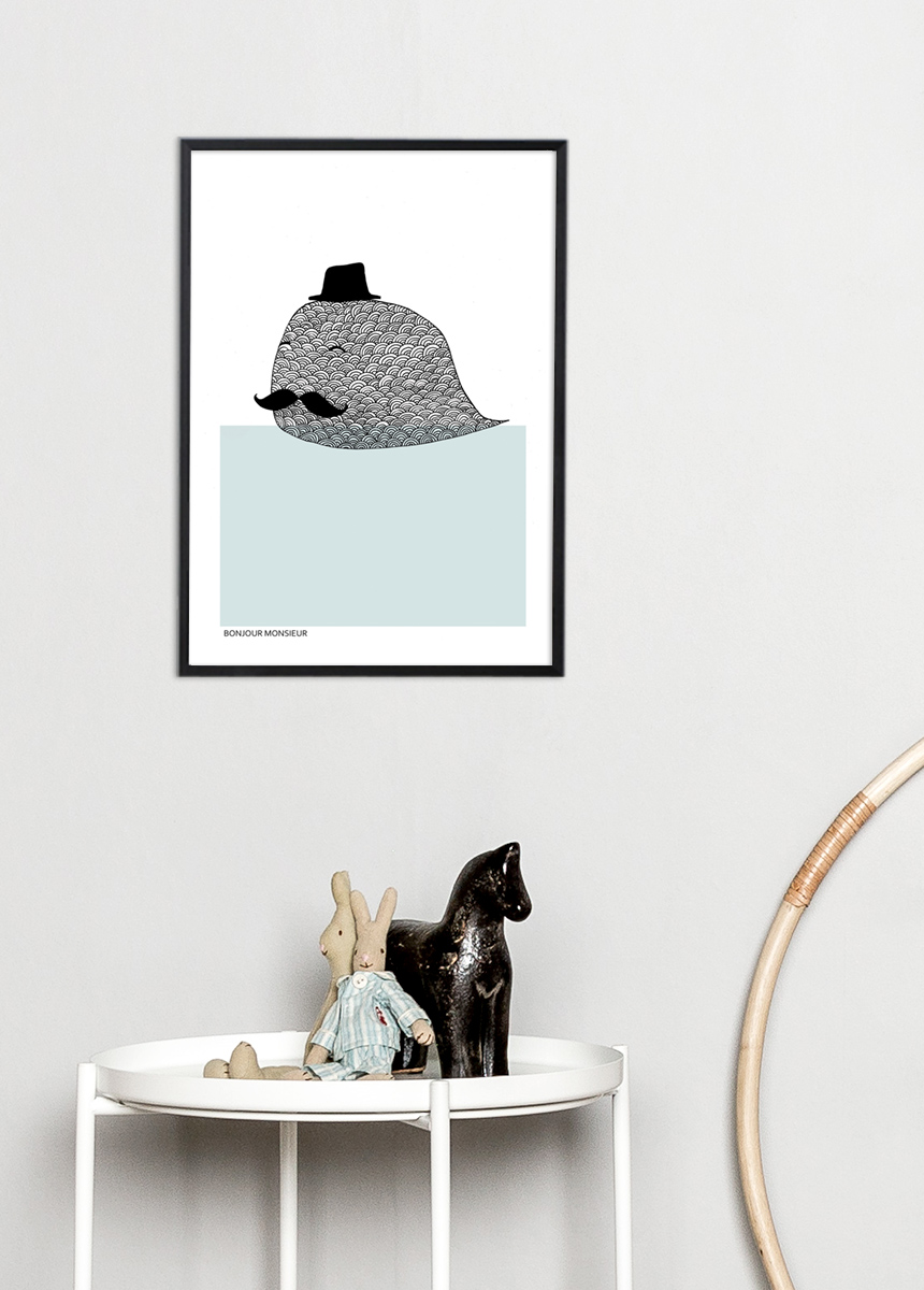 https://www.bga.se/bonjour-monsieur-30x40-cm-151011282Magdaty - Bonjour monsieur - 30x40 cm Posterhttps://www.bga.se/resource/u4ZN/dAD/G7GPjkWTLpK/Affischer-Posters/Inramade/Magdaty/bonjour_monsieur.jpghttps://www.bga.se/resource/u81U/snY/UO1bqHLubJ/Kategoribilder/Posters/bonjour_monsieur_Mouseover.jpg249.00SEKDiscontinued/Posters/Posters/NyheterRolig illustration med en mustaschprydd glad val som simmar mot nya äventyr. En snygg grafisk affisch att pryda barnrummet med för den som vill ha nått annat än de vanliga barnboksmotiven. Komplettera med en stilren bildram eller häng upp postern som den är tillsammans med andra illustrationer.MagdatyStående2016-05-17T21:31:05+02:00