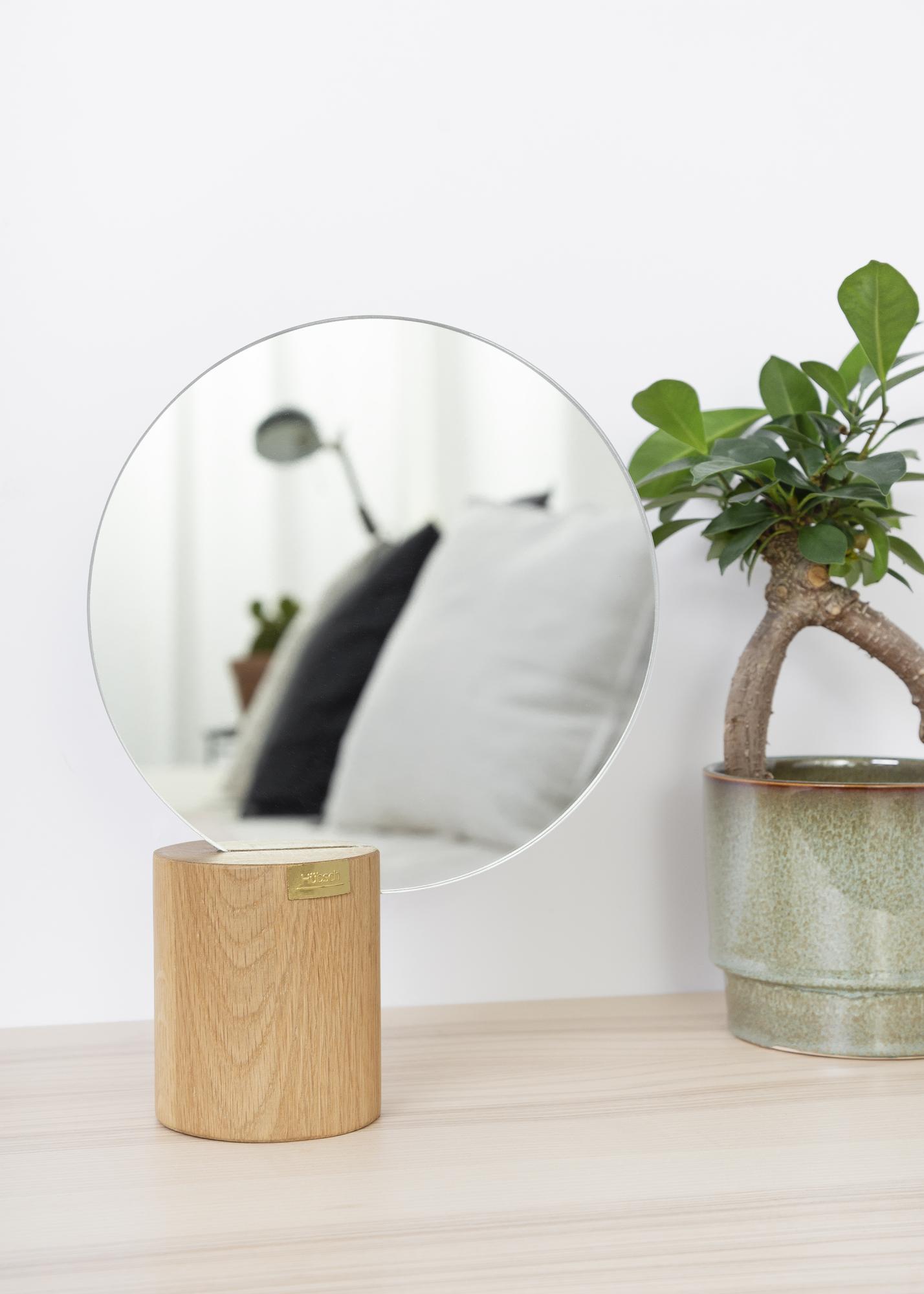 Spegeln kan placeras som en iögonfallande och funktionell inredningsdetalj på byrån eller hyllan i vilket rum som helst.