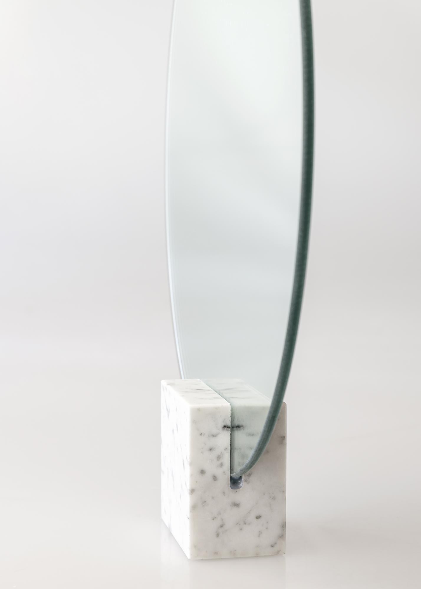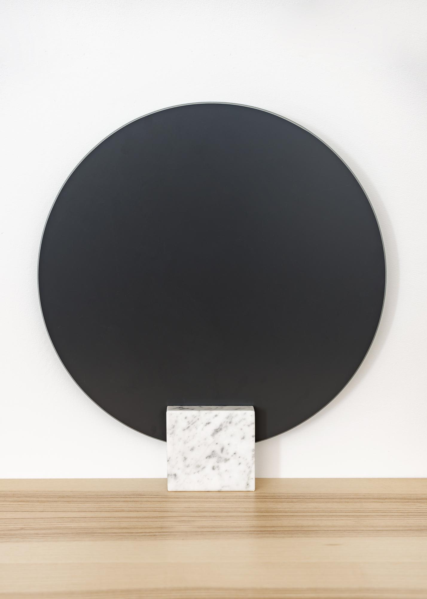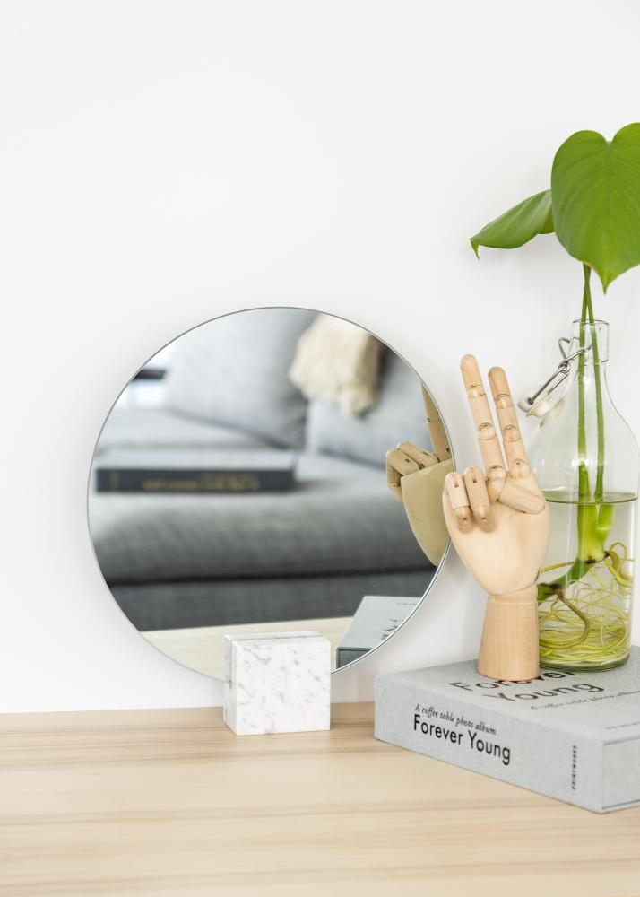 Denna runda bordsspegel har en mycket stilfull design. Det mjukt runda spegelglaset i kombination med det kantiga stödet i marmor skapar en intressant och mycket tilltalande kontrast.