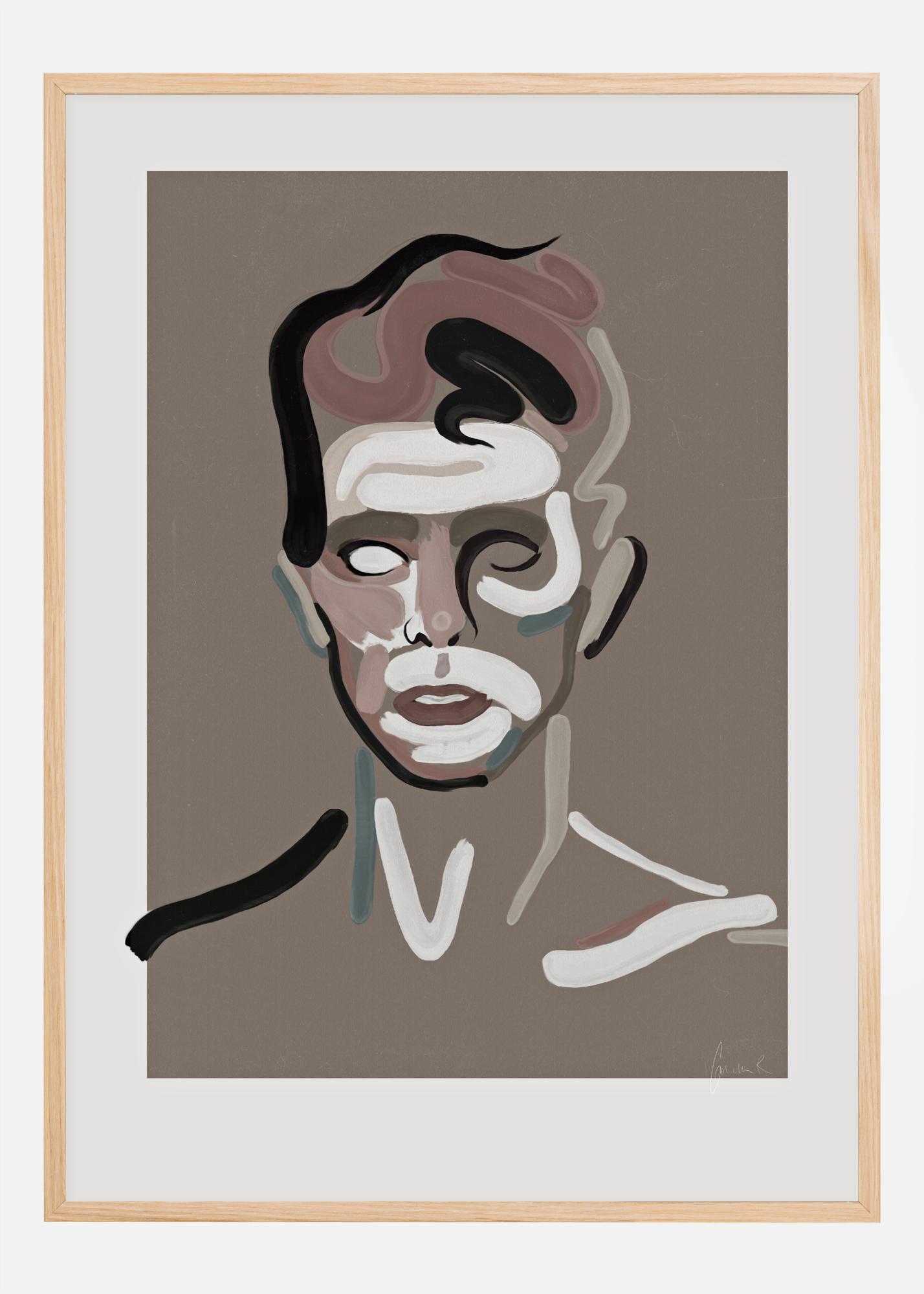 En abstrakt porträttposter med David Bowie som är gjord med tjocka penseldrag. Vit, svart, blå och rosa färger används för att skapa ett effektfullt porträtt. Djärva drag skisserar ansiktet när han tittar och bildar ett övertygande, abstrakt verk som är perfekt för att skapa liv på en vanlig vägg.