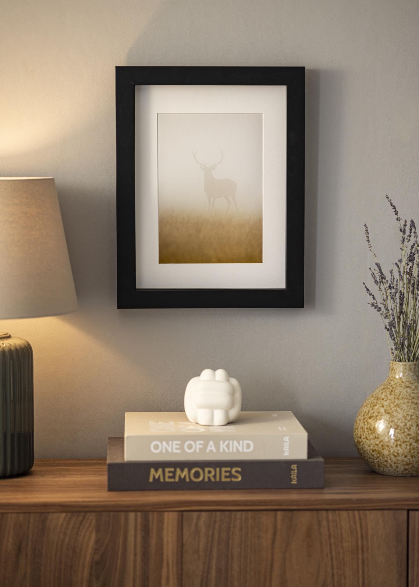Fururam tillverkad i Finland som är svartmålad direkt på träet för en mer genuin träkänsla. "Boxholm Svart" har ett djup på 43 mm perfekt när du vill rama in olika typer av föremål. Eller bara att du vill att din inramning kommer ut en bit från väggen. Till ramen ingår även en distanslist som gör att du själv kan välja mellan två djup på inramningen.