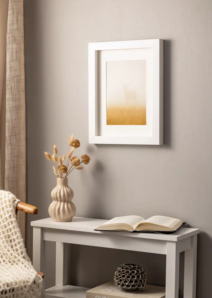 Fururam tillverkad i Finland som är vitmålad direkt på träet för en mer genuin träkänsla. "Boxholm Vit" har ett djup på 43 mm perfekt när du vill rama in olika typer av föremål. Eller bara att du vill att din inramning kommer ut en bit från väggen. Till ramen ingår även en distanslist som gör att du själv kan välja mellan två djup på inramningen.