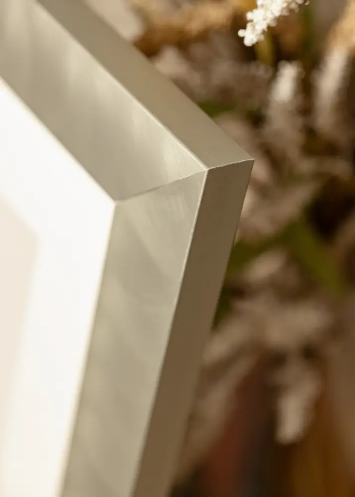 Bred ram tillverkad i aluminium av hög kvalité, med ett utseende av ljust stål, som med sin rena design gör sig bra både i minimalistisk och mer blandad inredningsstil. Tavelramen passar att rama in svartvita fotografier, posters med citat och grafiska tryck i. Häng tavlan tillsammans med fler matchande motiv eller kombinera ramar i många olika storlekar till en hel tavelvägg i vardagsrummet och få ett annat blickfång än tvn.