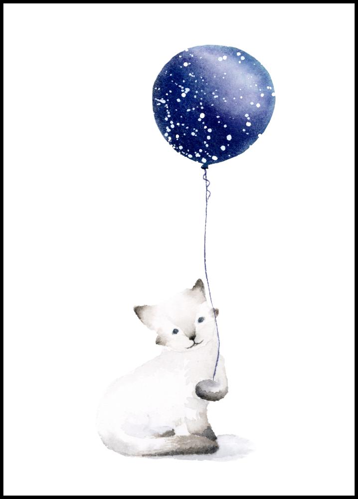 Cat With Balloon Poster (21x29.7 cm (A4))