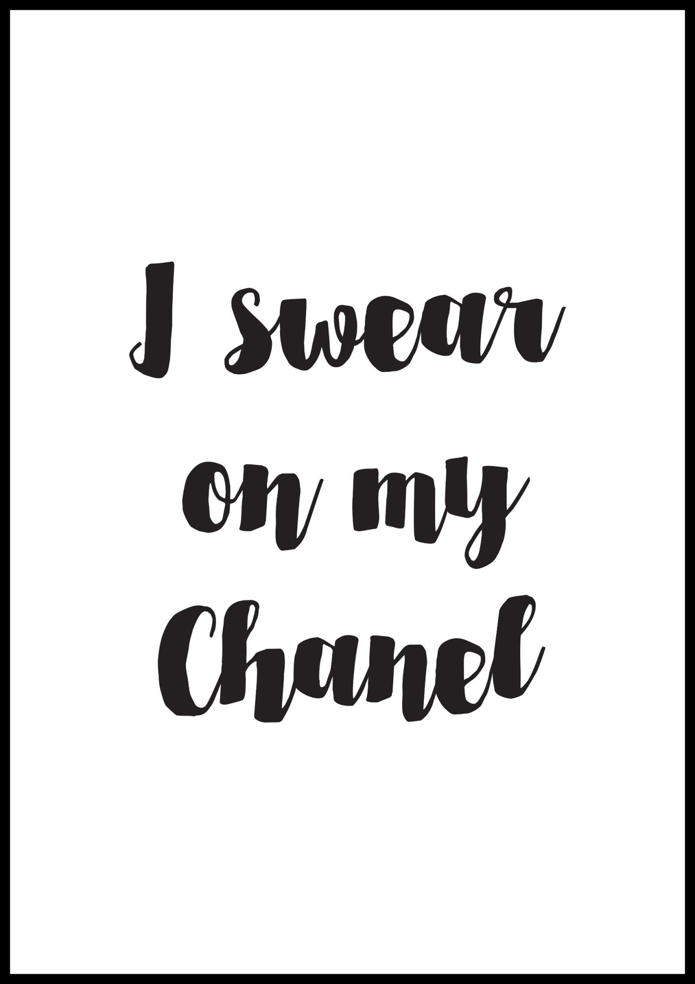 Om du inte svär på din Chanel så räknas det inte. Den här charmiga postern passar perfekt för dig som gillar att shoppa, och då gärna väljer fina Chanelprodukter. Häng upp den som den är eller komplettera med en ram i en snygg färg. Postern är vit med texten "I swear on my Chanel" tryckt med snirkliga, tjocka bokstäver. Eftersom vi kan trycka den i hela 7 format hittar du enkelt en som passar just dig.