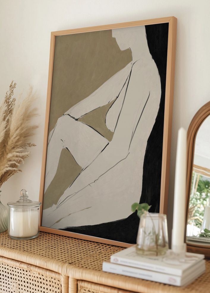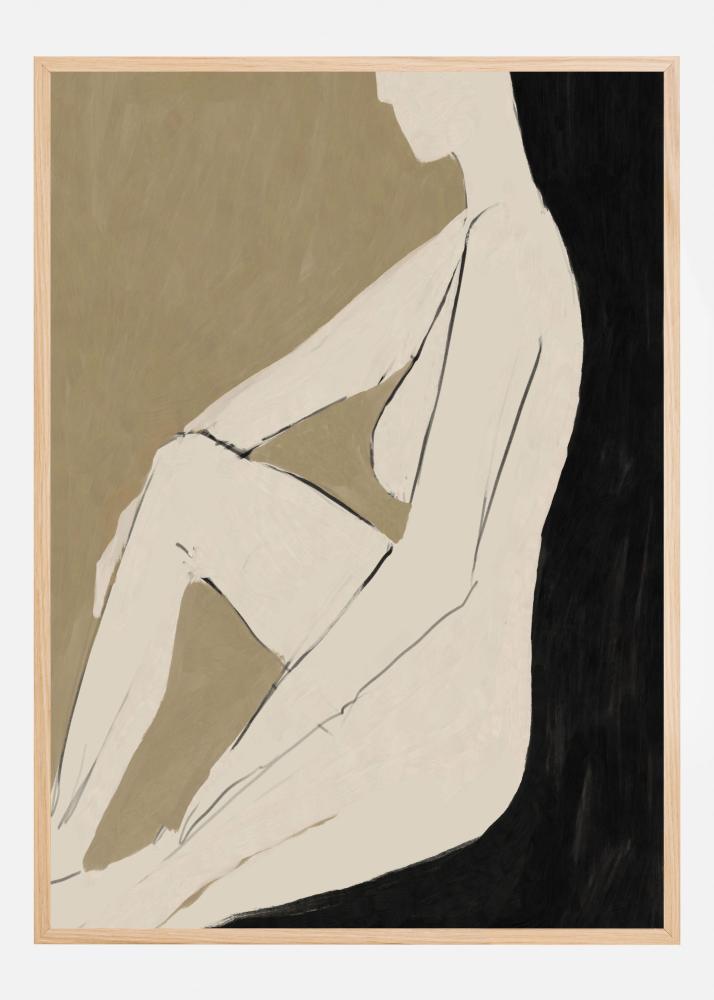 Denna eleganta poster föreställer en stiliserad kropp i sittande position, vilket ger ett modernt och minimalistiskt uttryck. Den avskalade designen framhäver de mjuka kurvorna, medan den abstrakta stilen ger ett konstnärligt intryck som passar in i både moderna och klassiska miljöer. Affischen är ett perfekt tillskott till ditt hem, kontor eller galleri, och kan enkelt kombineras med andra prints för en stilfull vägg.